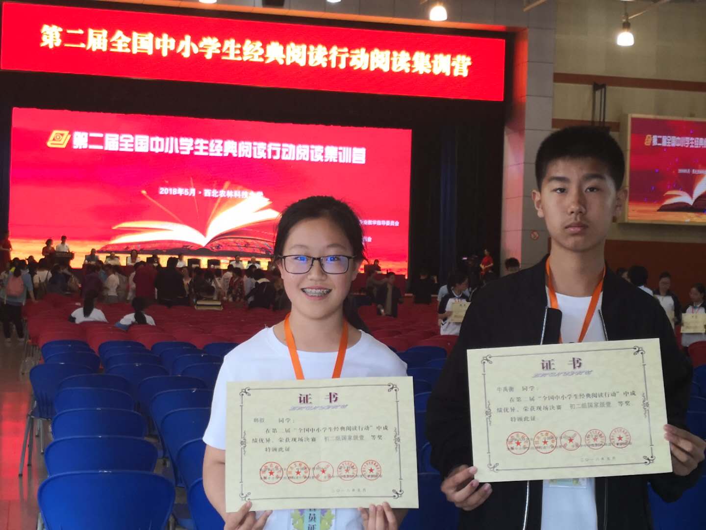 5月12到13日,大连理工大学附属学校初二滕方悦、邢津晨、韩叙、牛禹衡四位同学 ,赴陕西西安杨凌参了由语文报社主办的第二届全国中小学生经典阅读行动阅读集训营活动。他们是经过初赛,从全国60多万中小学生中的选拔出来选手。此次活动在西北农林科技大学举办,得到了44所大学的支持和协助,来自全国各地1600多名学生参加现场比赛。