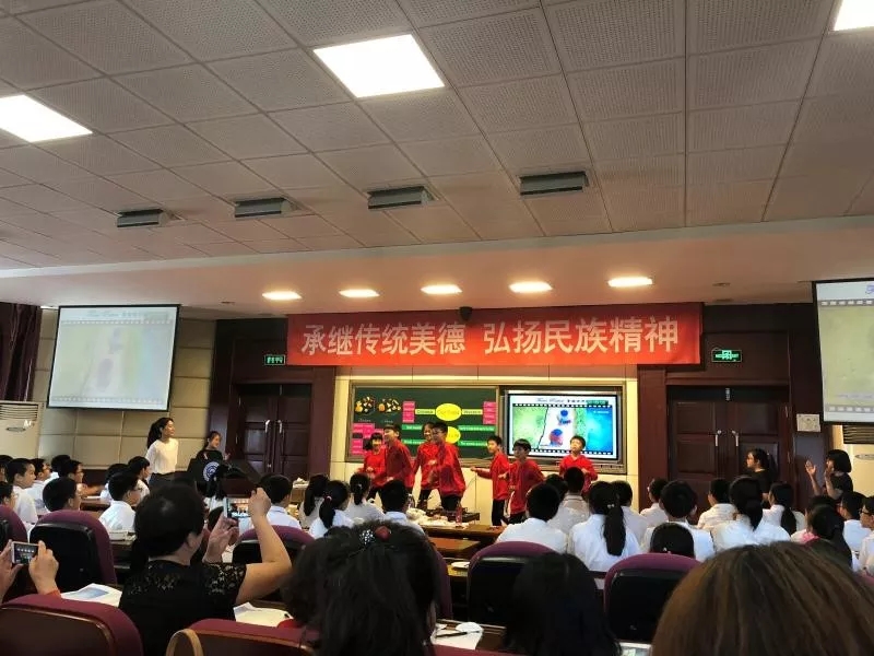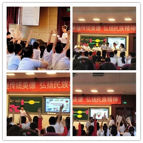 本课是以食物为切入点,在小组合作和实践体验活动中,通过doing and learning的多学科融合学习的途径,对比中西方饮食文化的差异,总结健康生活的一些认识。通过教学实践,学生们真正做到了把课本知识延伸到实际的生活中,在课堂中自觉学习知识、自主运用知识。本节课实现了音乐、美术、历史、体育、信息等多学科的有机融和,孩子们的活跃的思维、流畅的表达、丰富的语言赢得了现场与会者的阵阵掌声。