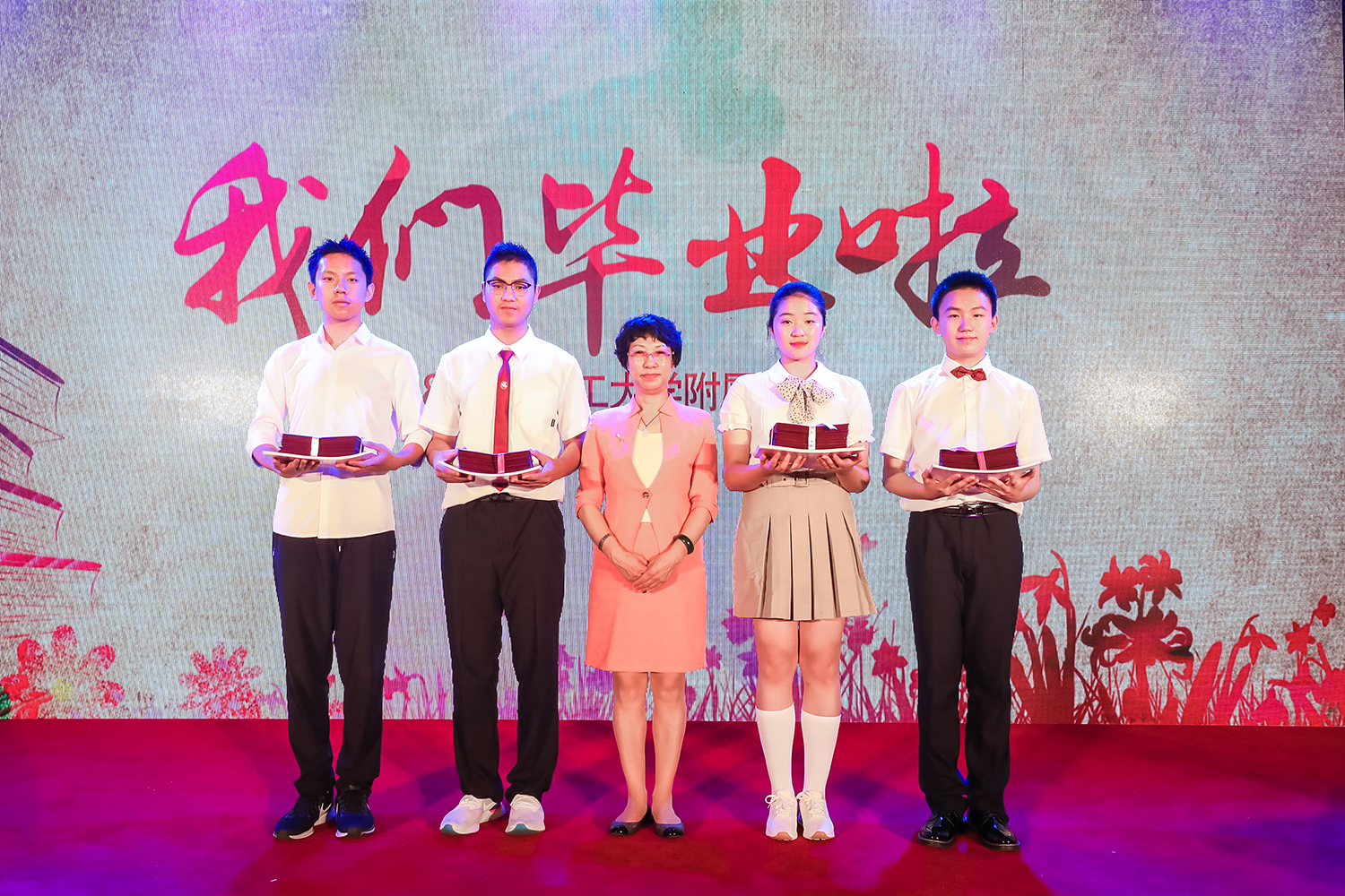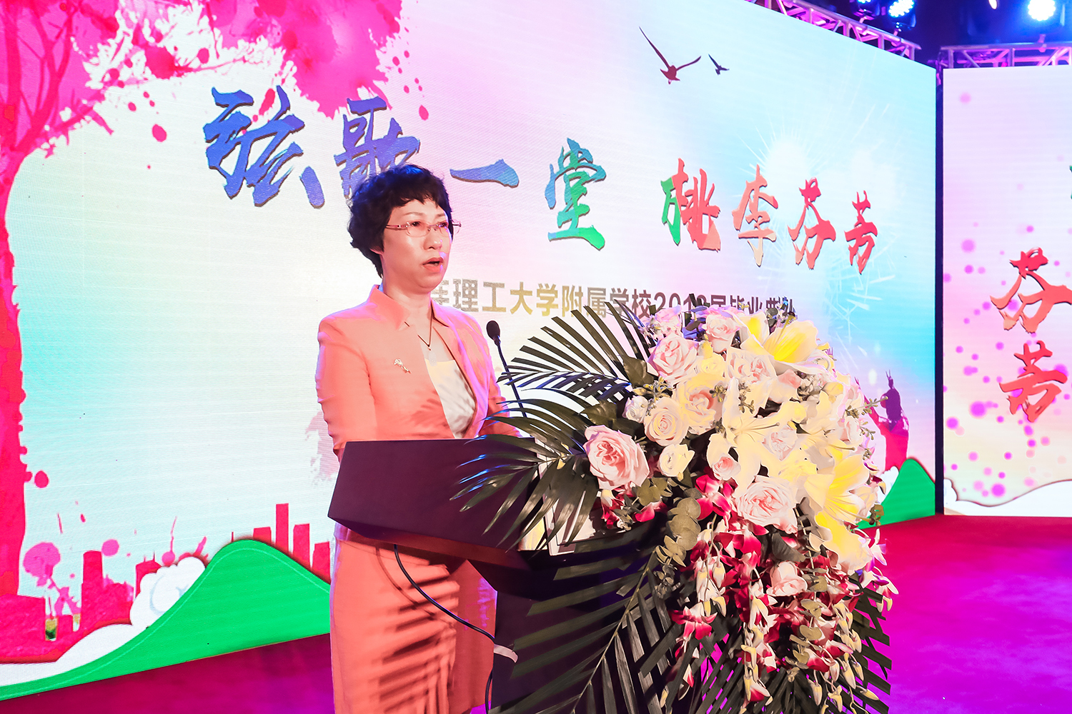 在热烈的掌声中,薛徽校长上台致辞。他首先向即将毕业的同学们表示祝贺,对一路培养同学们成长的老师、家长表示感谢;然后引用今年“五四”期间习近平总书记对青年学生的深切寄语,希望同学们坚定“不破楼兰终不还”的决心,保持“千磨万击还坚劲”的韧性,砥砺“任尔东西南北风”的意志,恪守“要留清白在人间”的原则,在实现中国梦的历史年轮中刻录下新时代大工附校学子的责任与担当。