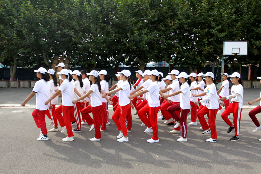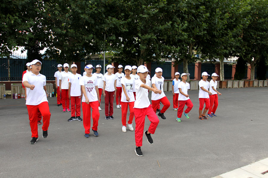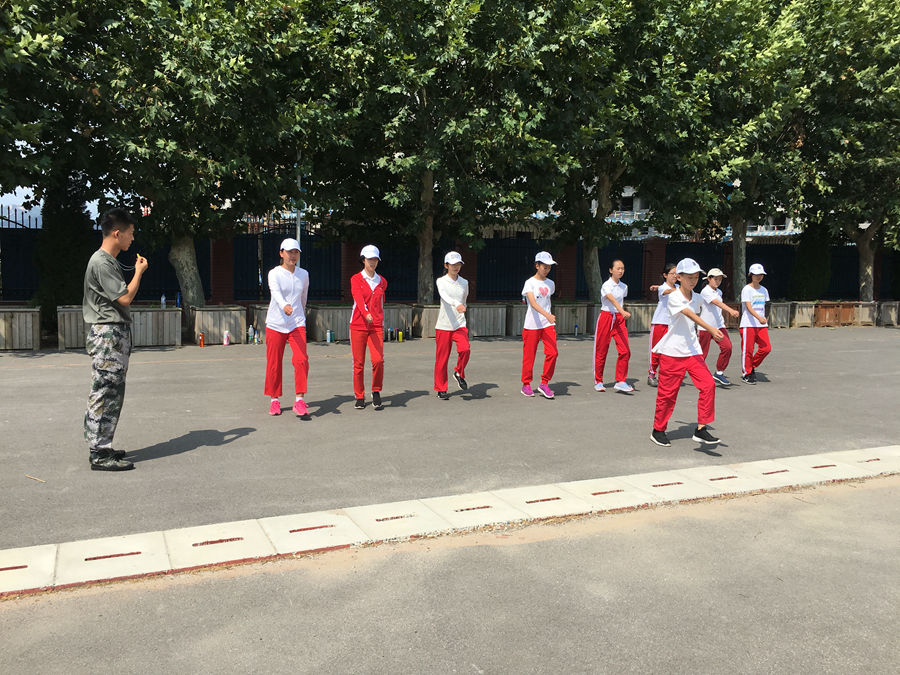 轮到我们走时,大家都很自信。先是分解动作,我们的脚稳稳地钉在地上,迈出的那条腿一动不动,站在一旁的老师和教官也为我们竖起了大拇指。