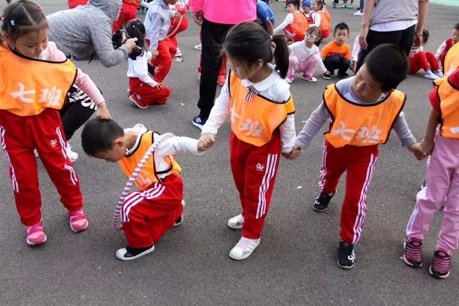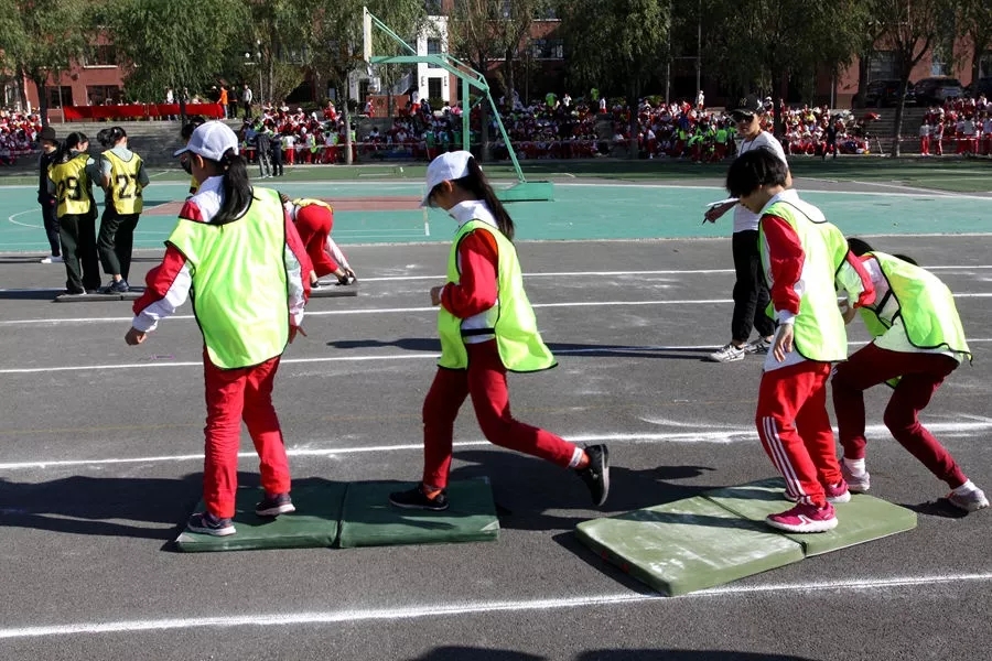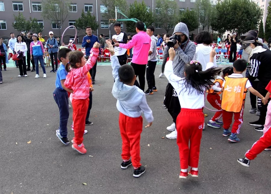比赛开始了!不同年级组分别进行穿衣接力、踩桩过河、车轮滚滚、呼啦圈传递、指压板跳绳等趣味比赛,一场精彩的体育盛宴把每一位师生都“嗨”起来了。