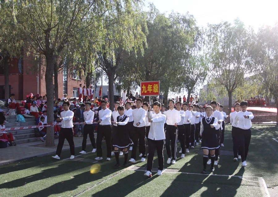 趣味运动会的入场仪式别开生面,每个年级各具特色,让人耳目一新。特别是九年级的方队阳光帅气,斗志昂扬;他们步伐坚定,口号响亮,令人振奋。