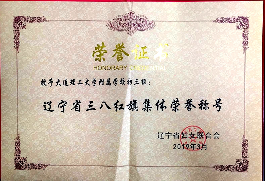 为纪念新中国成立70周年及“三八”国际劳动妇女节109周年,辽宁省妇联表彰了近两年来全省各行各业涌现出的优秀女性及女性集体。大连理工大学附属学校初三组凭借着特别能吃苦、特别能战斗、特别能奉献的敬业精神,培养了一批又一批德才兼备的优秀学子,赢得了学生、家长和社会的一致认可,荣获“辽宁省三八红旗集体”荣誉称号。
