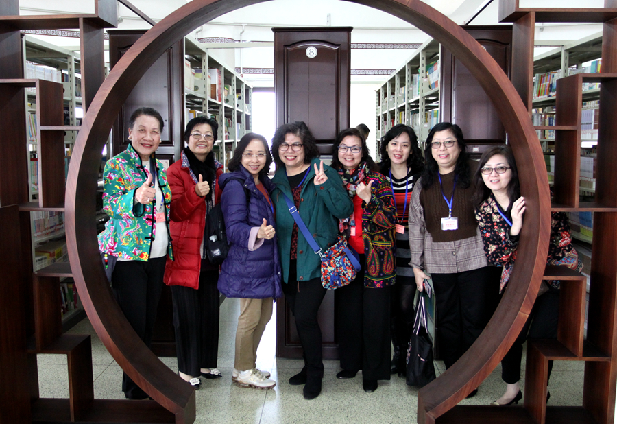 春暖花开,美丽的校园吸引了交流团校长们驻足拍照。