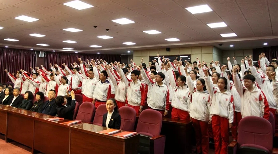 然后各班学生代表上台发言并代表带领大家进行宣誓,他们以青春的名义,用充满感恩、豪情的语言代表九年级学生表示,将不辜负领导、老师和家长的厚望,钻研刻苦、勇于拼搏,以饱满的精神和热情迎接中考!