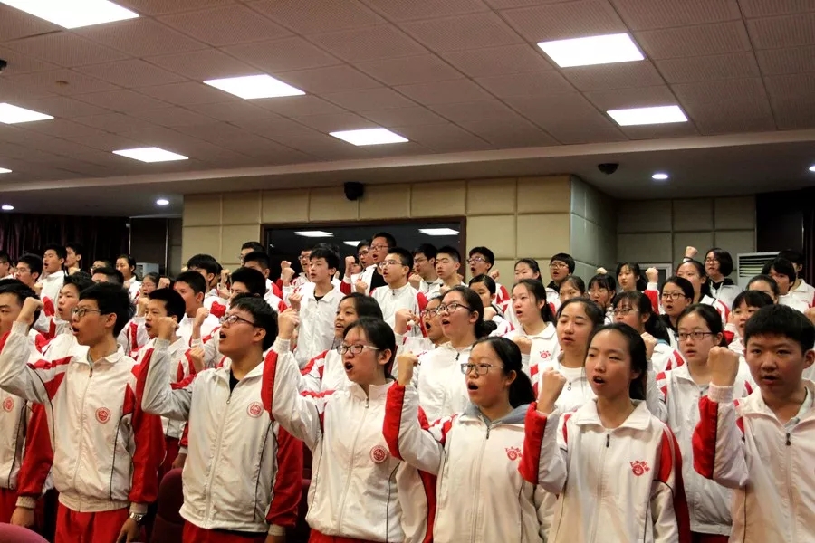 全体同学整齐站立,高举紧握的右拳,郑重宣誓:“目标明确,意志如刚,全力以赴,成我梦想!我信我行,我拼我赢!” 九年级全体同学的铮铮誓言将现场气氛推向了高潮。