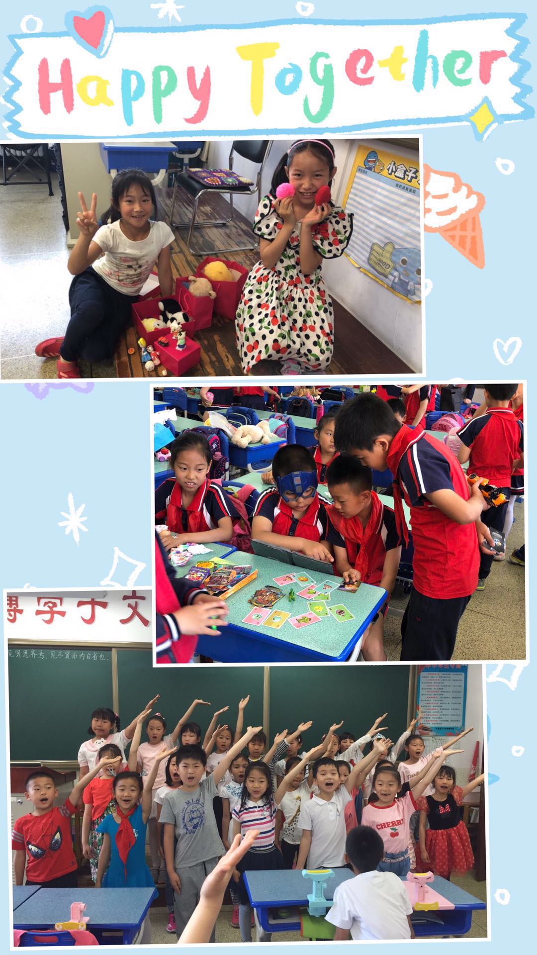 今年的六一展演活动以班级为单位在教室分别举行。各个班级经过精心布置,花团锦簇,流光溢彩,处处彰显节日的喜庆。