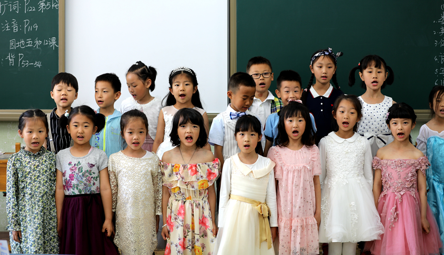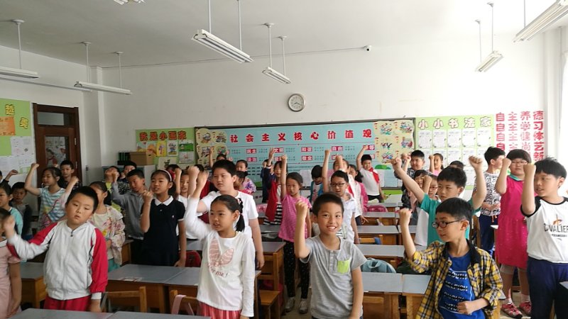 随后,“我们都是追梦人”童歌班班唱响彻整个校园。孩子们柔婉、清脆、纯洁的“天籁之音”此起彼伏,闭目聆听,耳畔流芳,让人心旷神怡、神清气爽,顿感风烟俱净、物我两忘。妙曼的歌声为这一颗颗水晶般的童心插上了梦想的翅膀。