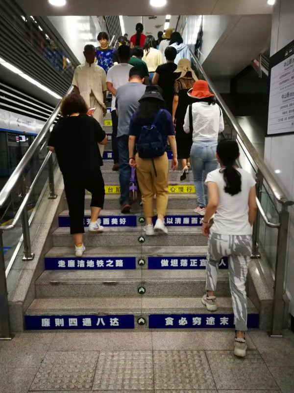 站内立柱和墙面上,反映中华传统美德的经典小故事,电扶梯、卫生间、垃圾桶、座椅下方、楼梯台阶等处张贴的廉洁文化标语,让大家置身车站的每个角落,都能感受到浓厚的廉洁文化氛围,不仅在心灵上得到了净化,思想上也进一步得到了升华。