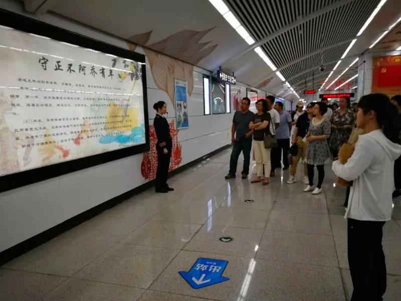 随后,在讲解员的引领下,通过参观地铁站内廉政景观、廉政走廊等,学习廉政法规,聆听廉政故事,感悟廉政文化的内涵。