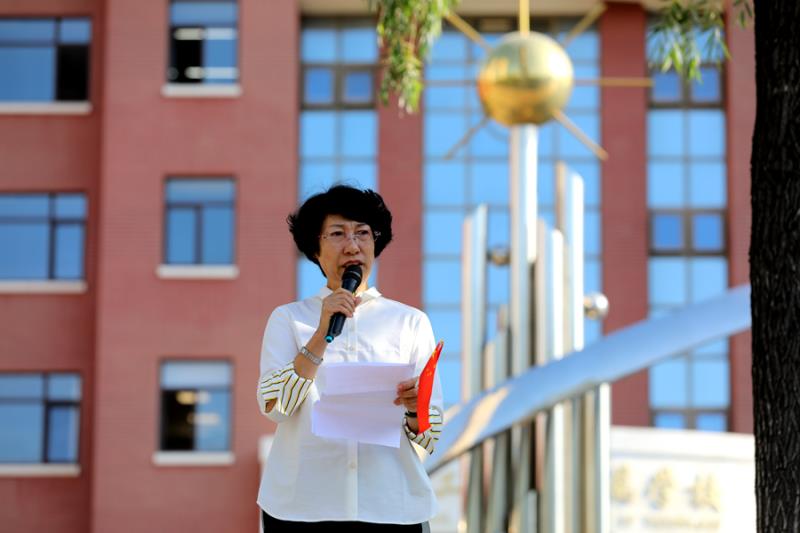 首先是庄严的升旗仪式,同学们手持国旗,高唱国歌,让爱国主义的旗帜在心中高高飘扬;接下来,周杰校长作了题为“我爱我的祖国”的讲话。在即将迎来祖国70华诞之际,周杰校长与大家一起回顾了近年来伟大祖国的伟大成就,希望大家积极进取、爱我中华,做新时代的奋斗者。她说:“青少年的家国情怀和远大理想,根植于对国家和民族历史文化的深刻理解;青年的担当作为和进取创新,来自于对国家和民族历史文化的深厚自信与深沉热爱。”周杰校长呼吁全体师生牢记习近平总书记的话:“爱国,不能停留在口号上,而是要把自己的理想同祖国的前途、把自己的人生同民族的命运紧密联系在一起,扎根人民,奉献国家。”