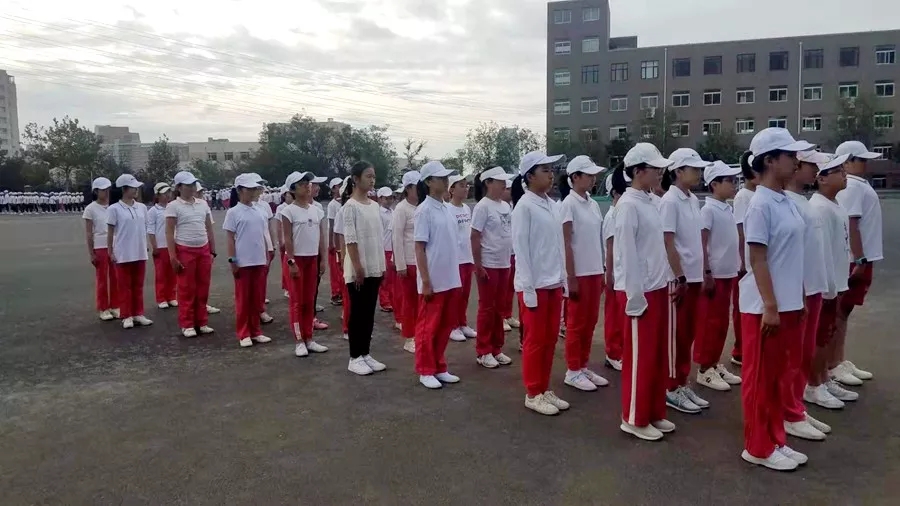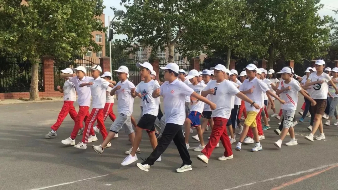 “今天早上刮起了阵阵凉风,我们都冻起了一层鸡皮疙瘩,但这并没有影响我们训练的决心。在站了一会儿军姿后,我们开始练习齐步走,首先是摆臂训练。经过两天多的练习,我们已经可以把动作做到标准,但频率不一。这可让我们下了大功夫:不断地在操场间反复走来走去,时不时看齐排面,同时还要抬高手臂。原先早晨集合还冻得不行的我们顿时汗流浃背”