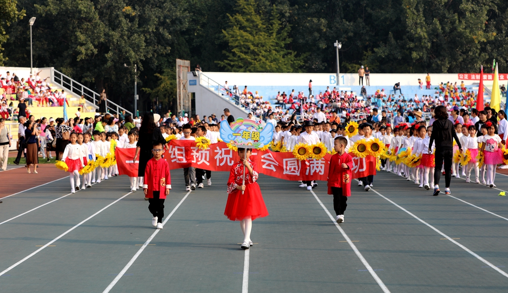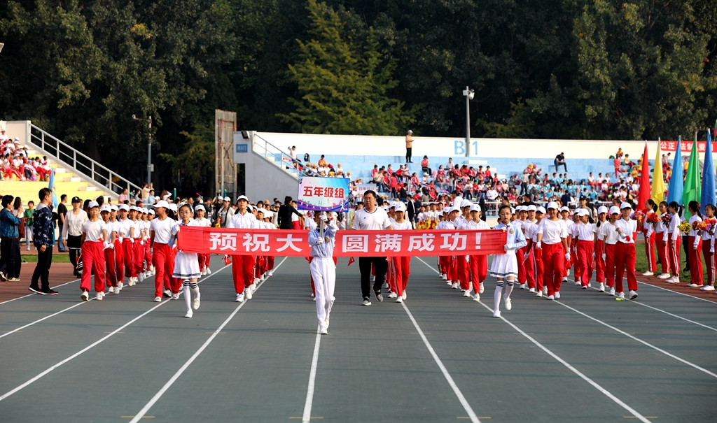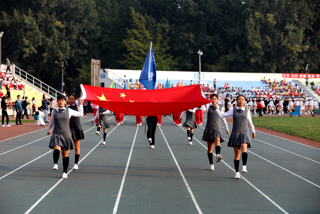 今天是我国“第6个烈士纪念日”,全体师生永远不要忘记正是有无数先烈的前赴后继、奋勇献身,才有我们国家今天的繁荣富强、文明进步。在即将迎来中华人民共和国成立70周年之际,盛世华诞、举国欢庆!我校召开秋季田径运动大会就是要贯彻党的教育方针,以“发展体育运动,增强人民体质”为宗旨,秉承“更高、更快、更强”的奥运精神,文明我辈精神、野蛮我辈体魄,以此纪念革命先烈,表达对革命先烈的景仰和追思,同时用我们的青春、健康、快乐与幸福为伟大祖国献礼!