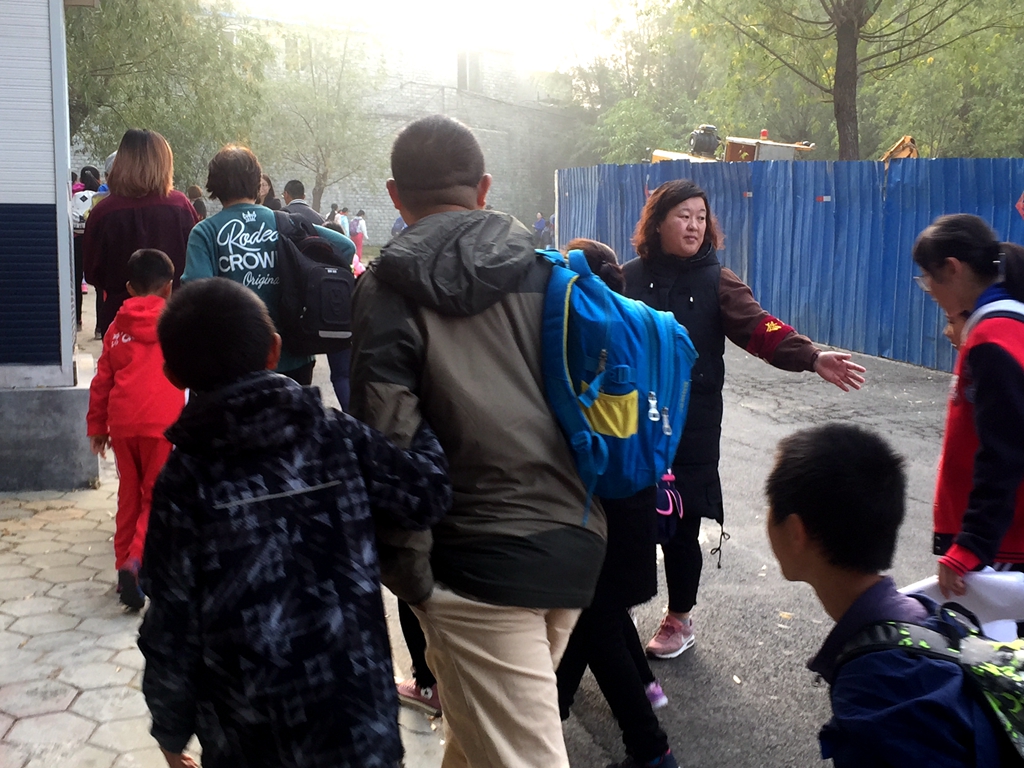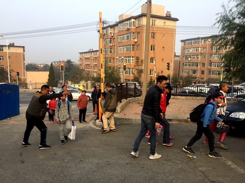 近期我校大门口进行改造施工,为切实保障学生安全进入校园,从10月21日起,我校加强了校园门口保护学生、维持秩序的管理、服务力度,中层干部中的所有男同志和值周队全体教师都在早晨七点钟准时到达学校指定位置,引导学生沿着安全步道进入校园。