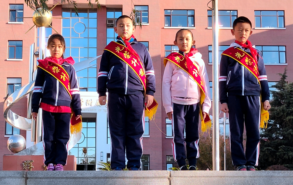 今天的升旗手是三年五班的这四位同学: