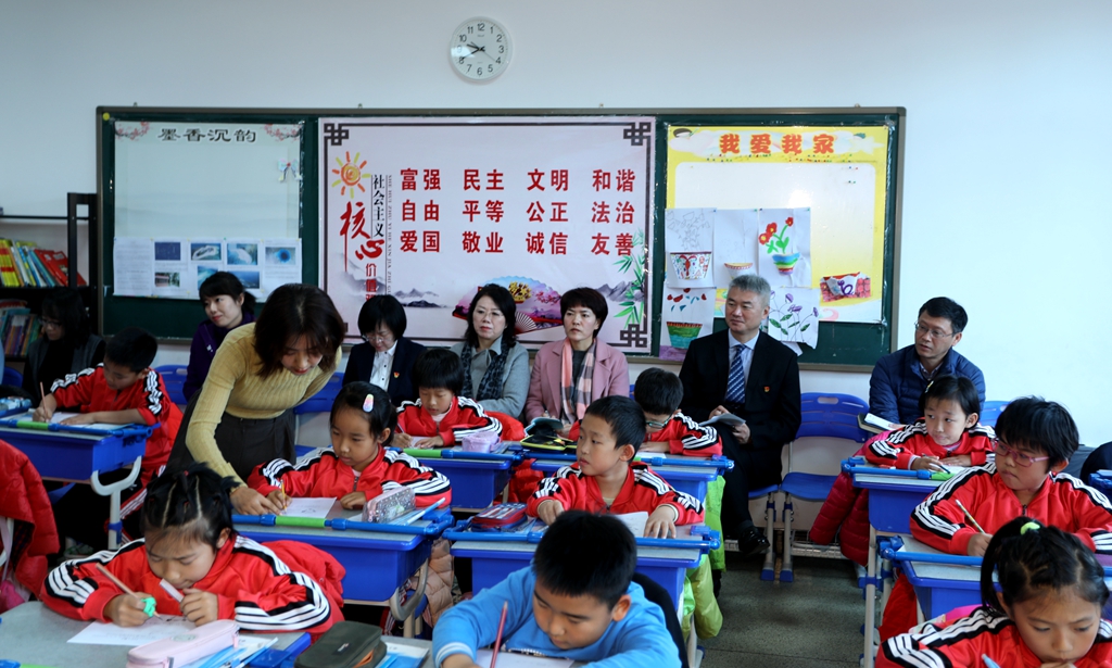 杨旭主任、金晔老师在我校王东校长等的陪同下深入课堂,先后观摩了中学七年级张颖老师、小学三年级张楠楠老师分别执教的两节数学课。听课过后金晔老师对这两位老师的职业素养、综合能力给予了高度的评价,对两堂课体现的师生间默契、融洽的关系更是赞赏有加。师德就发生在课堂里,师风更融化在校园中,春风化雨润物无声。
