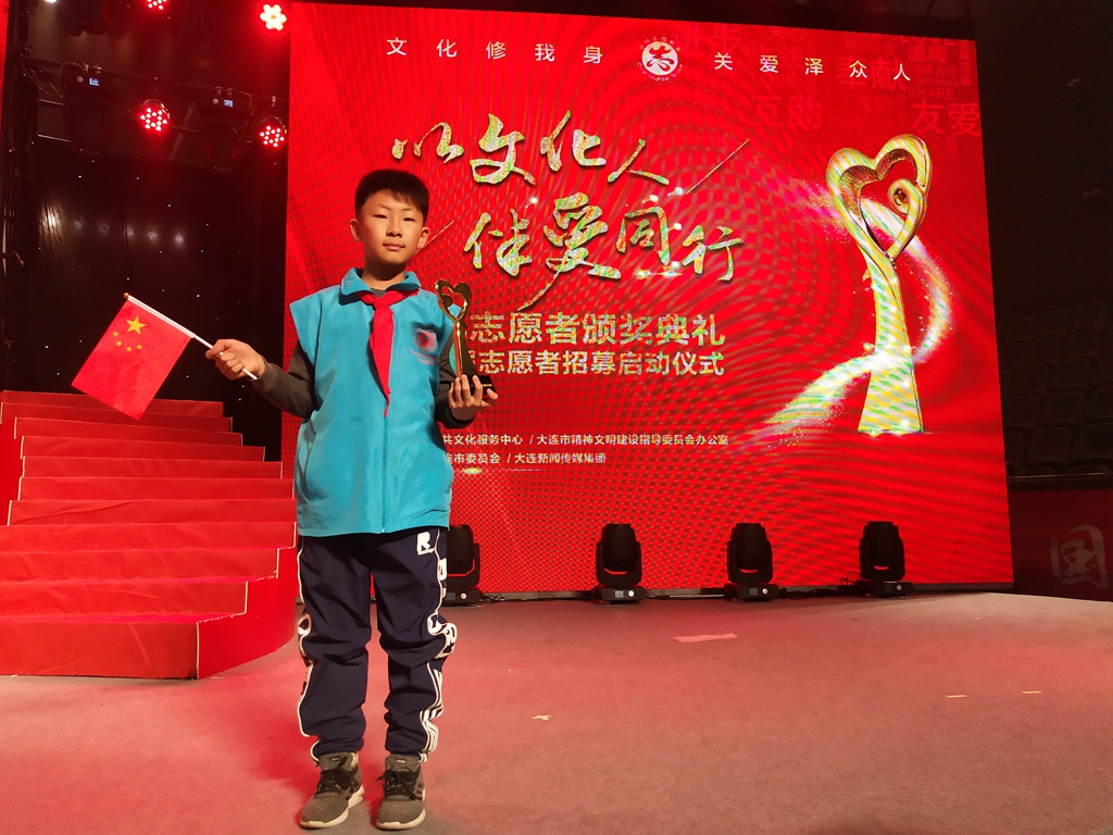 德育教育历来是我校教书育人的一项重要工作,培养正能量的社会主义接班人是我们义不容辞的社会责任。在12月5日进行的大连市“以文化人,伴爱同行”文化志愿者表彰会上,我校五年一班张翛然同学获得“最棒小小文化志愿者”称号。