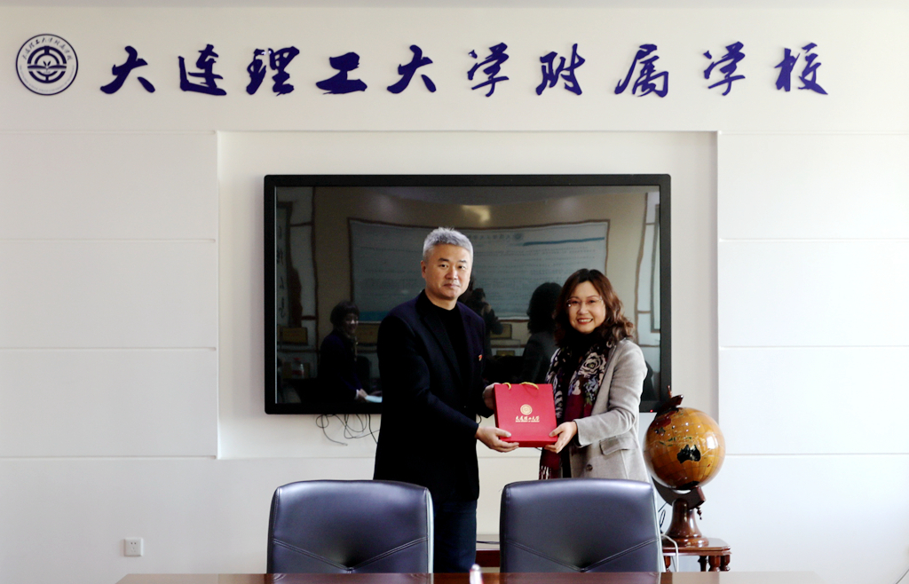 王东致欢迎辞,并代表学校向盘锦市辽东湾实验小学赠送了纪念品。张秋芳感谢了我校的周密安排和热情接待。