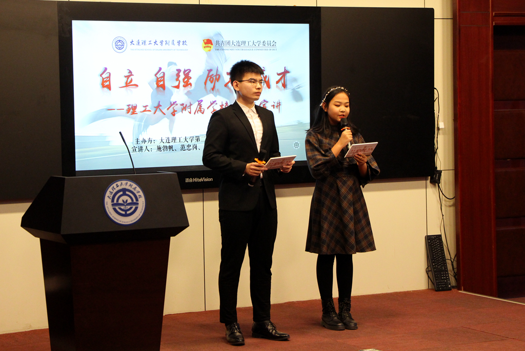 12月20日,我校与大连理工大学团委联合举办“自立、自强、励志、成才”主题宣讲活动。宣讲嘉宾是来自大连理工大学自立自强榜样代表与红色基因宣讲团的大学生志愿者们,他们为我校学生分享红色故事与成长经历。大连理工大学团委宣传部部长冯立芳、实践部部长王旭、我校校长王东、党总支书记田晓明、副校长赵欣欣、赵霞以及五年级班主任老师和同学出席了本次活动。宣讲由研究生支教团代表羿宏林与附属学校学生代表曾诗淼主持。