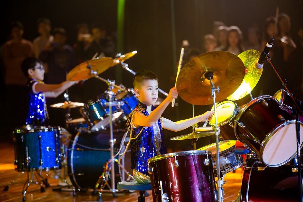 第三篇章,拥抱明天。器乐联奏中,架子鼓、小提琴、钢琴、古筝联袂登场,仙乐飘飘,让人如痴如醉;独唱《夜空中最亮的星》《绿光》,催人奋进,教师热舞嗨翻全场;由王东、田晓明等校领导表演的联唱,将汇演又一次推向了高潮。