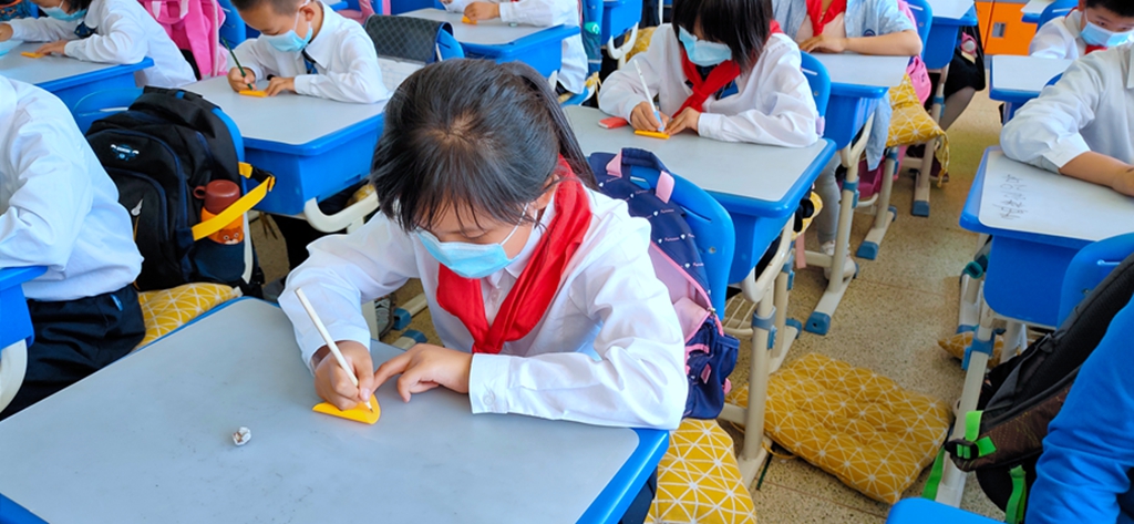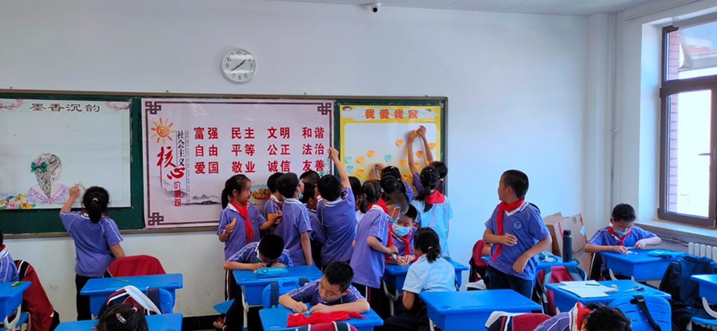 13:30,“我爱‘六一’梦想纷飞”主题队会正式开始。队会分为四部分,分别是写梦想、演梦想,猜梦想和展梦想。在各班级大队委带领唱响队歌后,开始了活动的第一个环节。教师们为学生分发“梦想贴纸”,同学们认真的把自己的梦想写在“梦想贴纸”上。