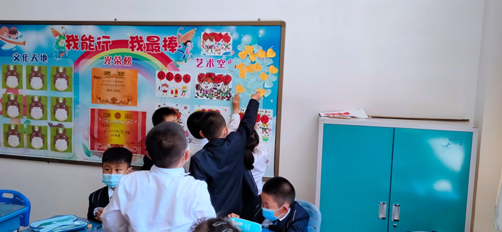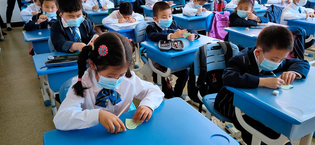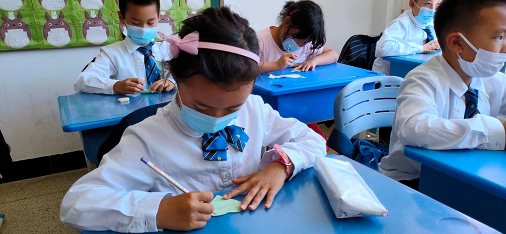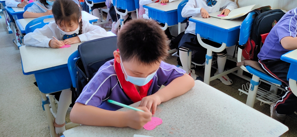 最后是展梦想环节,同学们一起把“梦想贴纸”贴到“梦想栏”中。“梦想栏”中有医生、教师、科研人员,解放军战士。疫情过后同学们都想成为对国家社会有贡献的人。