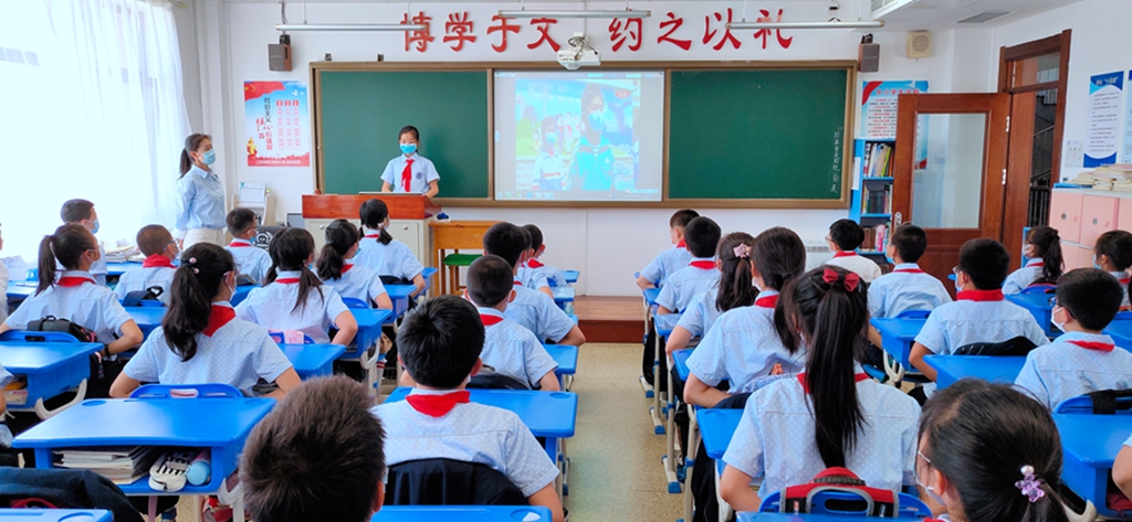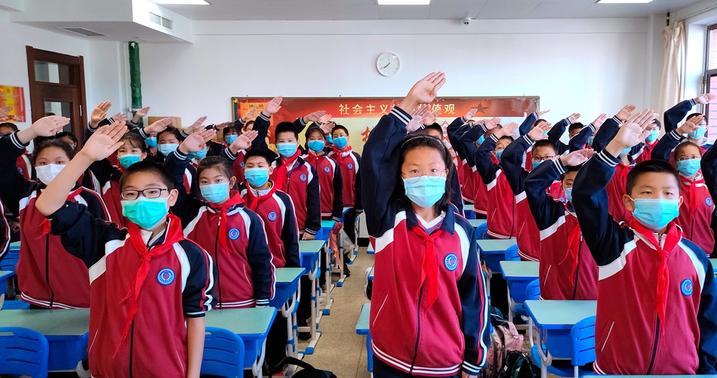 13:00开始,一至六年级全体师生共同观看“云入队”视频,一起了解入队知识。加强了少先队员们的光荣感和责任感,营造良好的少先队文化氛围。