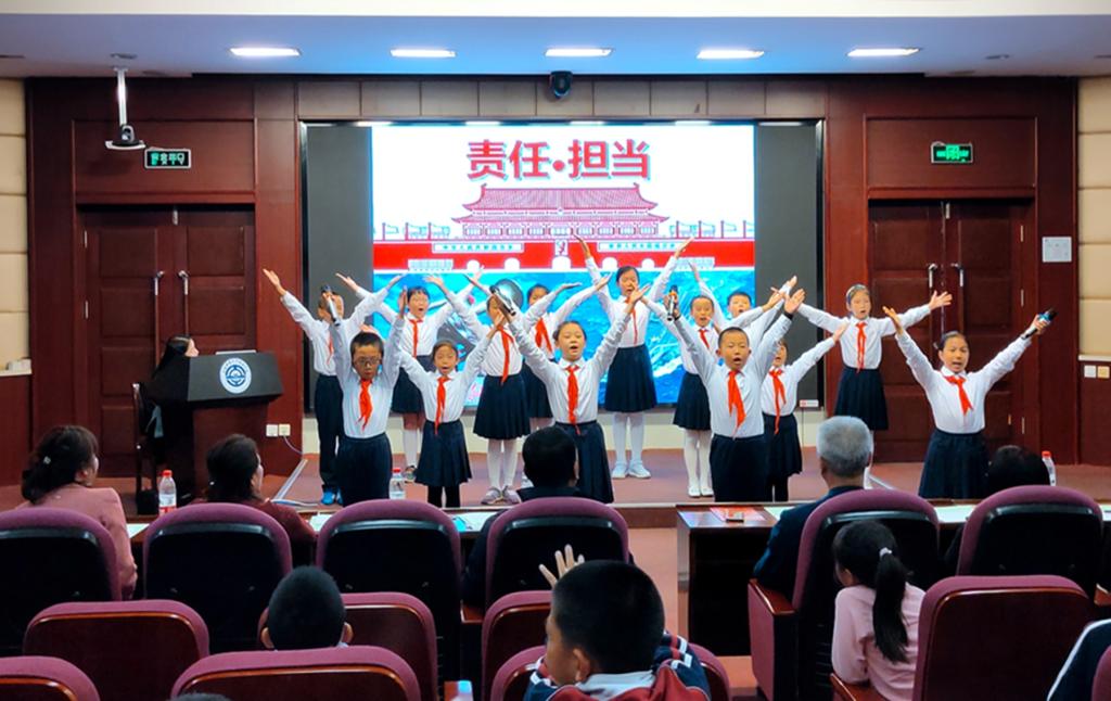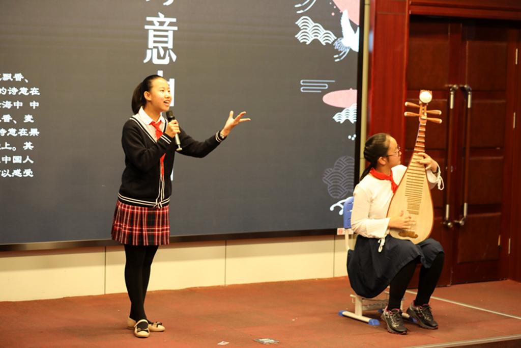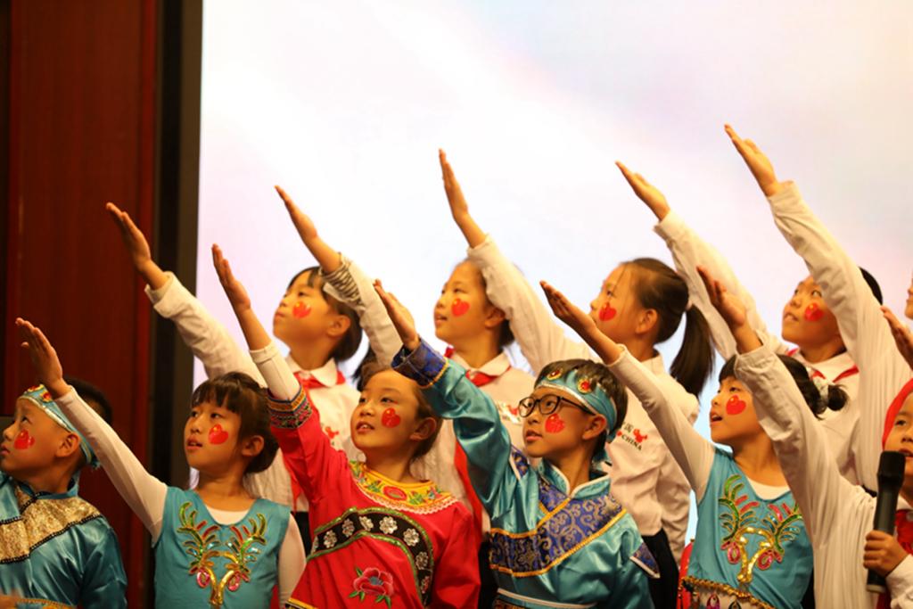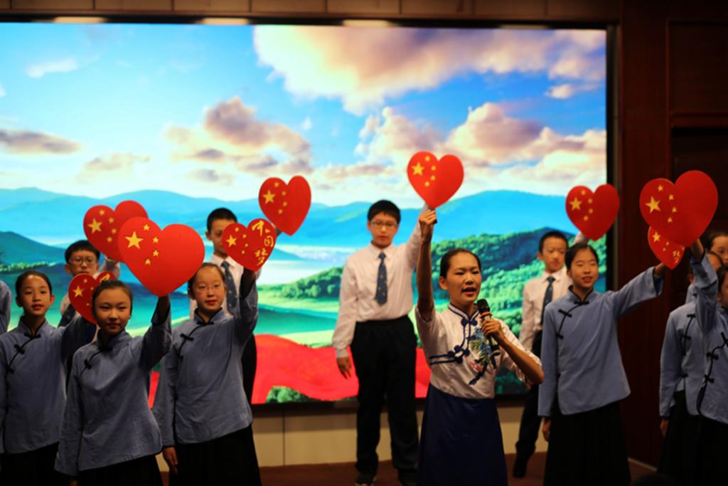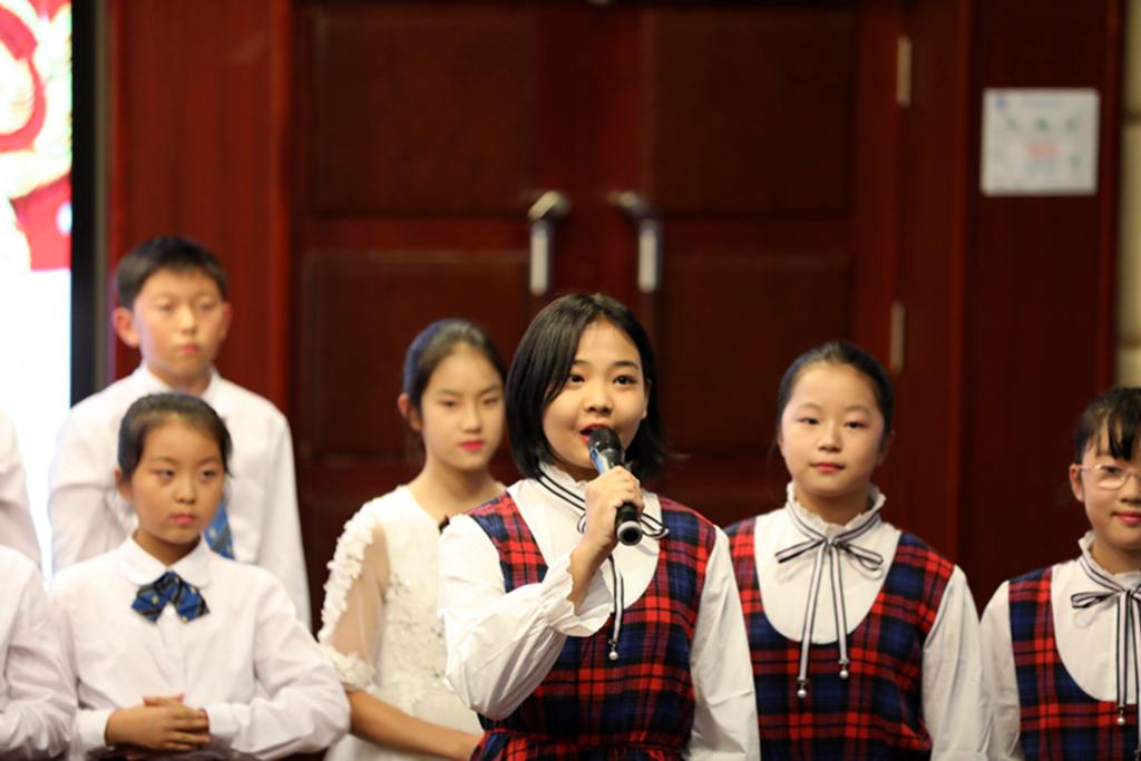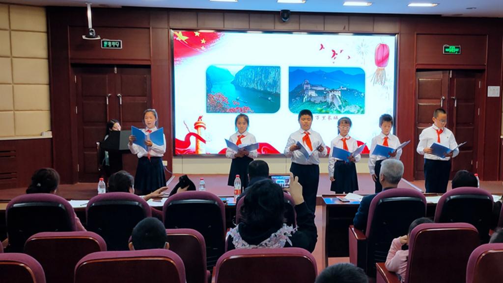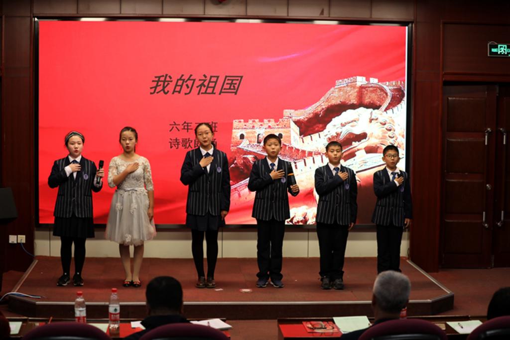 刚入职的青年教师李娇、祝权威、赵瑛琪、王英娇,也用自己的笔写下了对祖国母亲的赞歌《我深爱的这片土地》,同孩子们一同登台朗诵。