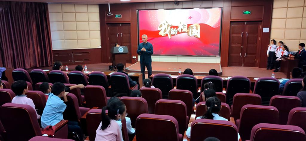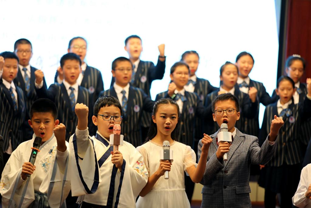 王东校长说:为什么我的眼里时常含着泪水?因为我深深地爱着脚下这片土地,爱着我们的祖国。我骄傲,我的国,因为你山川秀美。我自豪,我的国,因为你地大物博。其实让我们骄傲和自豪的又岂止是这些。我同样骄傲与我们的民族——在这片土地繁衍的华夏民族,沐浴过5000年的文明长河。5000年的风风雨雨,5000千年的起起落落,我们的民族从未沉沦过!无论内忧外患,还是天灾人祸。我们都相互扶持,一起走过。我们的民族,从未因打击、失败、挫折而丧失信心,我们的民族,始终积极乐观、斗志昂扬,奋勇拼搏。今天我们在这里为祖国放歌,明天你们将是祖国强盛的建设者。