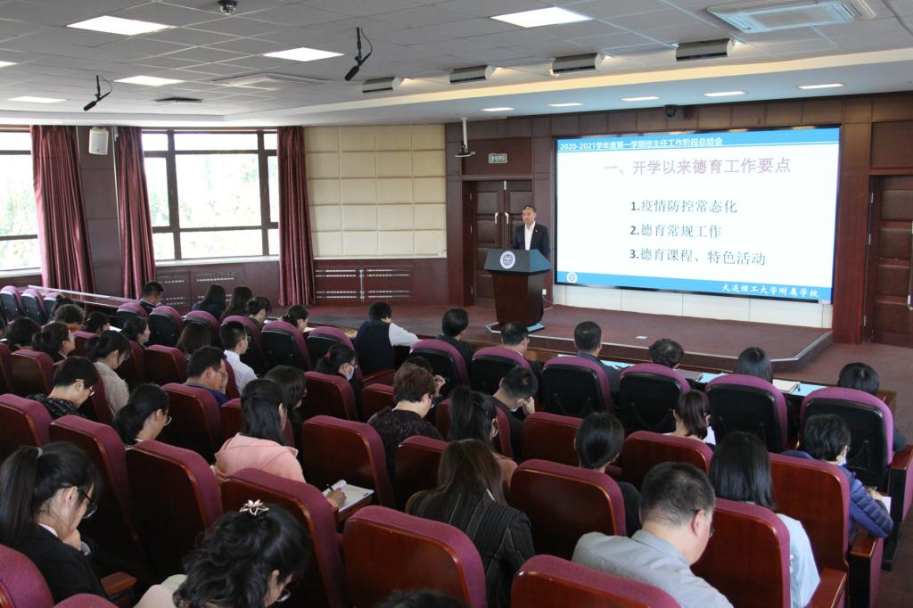 2020年10月13日,由我校德育工作部组织召开2020-2021学年度第一学期第二次班主任工作会议。校长王东、书记田晓明、副校长赵欣欣、赵霞、李桂玲及全校班主任参会。长海县教育观摩团队列席会议。