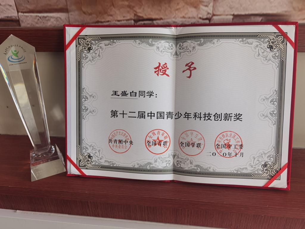 2020年9月3日,第十二届中国青少年科技创新奖终审会通过云端举行,各地候选人在各省会参加远程答辩。候选人既有制作小发明、小创造的小学生,也有做出一定技术性、创新性发明创造的中学生,还有在国内外重要学术期刊上发表多篇论文、在国内外科技竞赛中取得优异成绩的大学生,他们展现了当代中国青少年的风采。终审会由中国科学院院士杨乐主持,多位教授、专家作为评委。经过激烈角逐,91名优秀青少年最终入围,其中就有大连理工大学附属学校八年三班的王盛白同学。