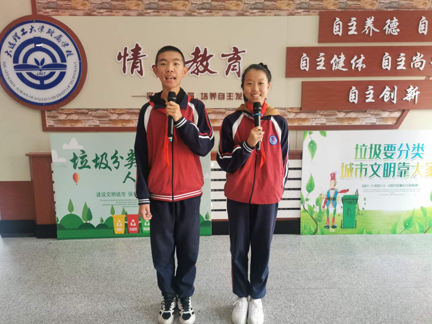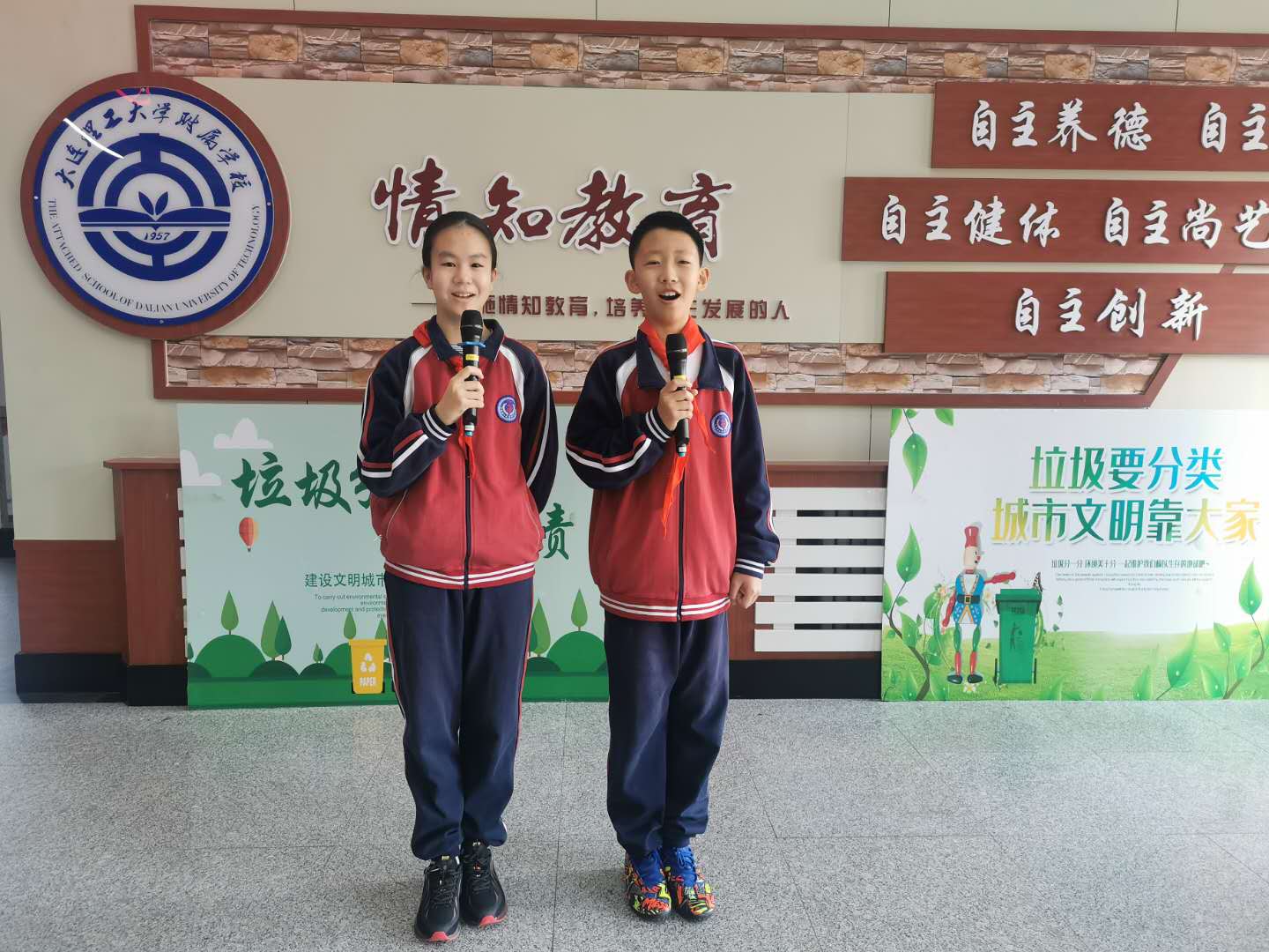 仪式在雄壮的国歌声中开始。主持人周赫禹、于千娇两位同学强调消防安全的重要性,呼吁全体师生应该把安全作为学习、工作和生活的第一准则,学习和掌握一些必要的安全知识,了解一些在紧急状态下的急救、自救方法,牢记消防安全,珍爱生命,远离火灾。