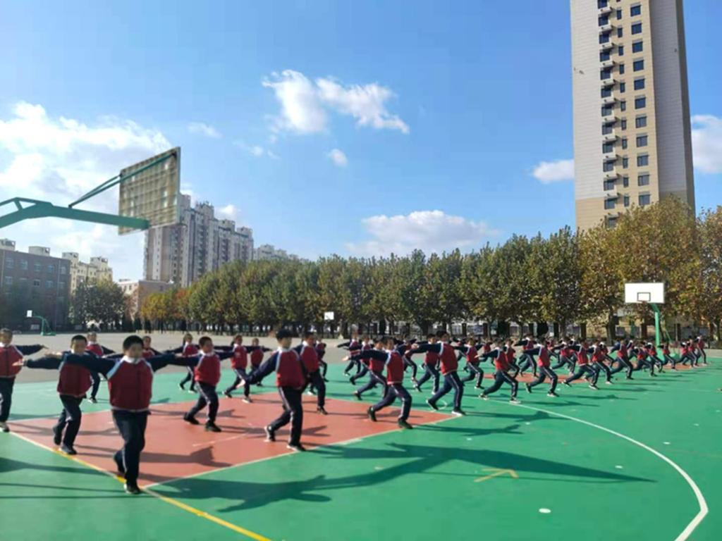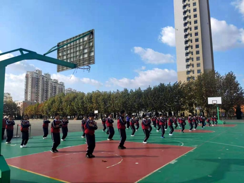 赛前,各班级高度重视,班主任、体育老师利用体育课、课间操时间对学生进行为期一个月的集中指导,对会操科目进行反复的巩固和训练。