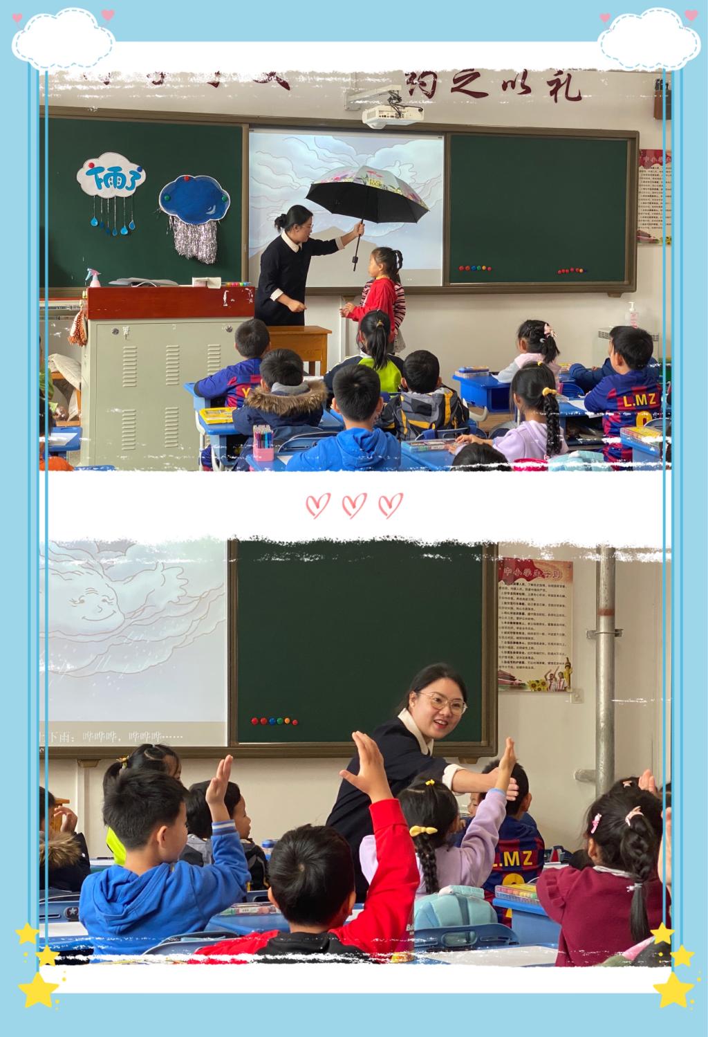 丁荔老师执教的是一年级美术课《下雨了》。首先以情景导入的形式让学生们感受到下雨时的景象,随后通过欣赏名家的画作,让学生们仿佛置身于雨景之中,有身临其境之感。丁老师用丰富的教具启发学生,与学生互动自然而活泼,呈现出了一堂生动的美术课。