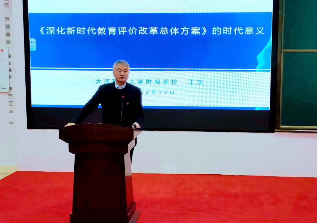 12月2日下午,附属学校党总支全体党员在我校圣克拉校区初中B1阶梯教室召开。会上,校长王东给全校党员讲了题为“《深化新时代教育评价改革总体方案》的时代意义”的党课。王东首先根据党的十八大、十九大、全国教育大会等会议精神,解读了中共中央、国务院印发的《深化新时代教育评价改革总体方案》包含的5方面22项重点改革任务。王东分析指出,教育评价具有“指挥棒”的作用,牵一发而动全身,这份新中国第一个关于教育评价系统改革的纲领性文件立足群众关切、社会关注,“破”“立”有致,必将在中国教育事业的发展中留下浓重的一笔。