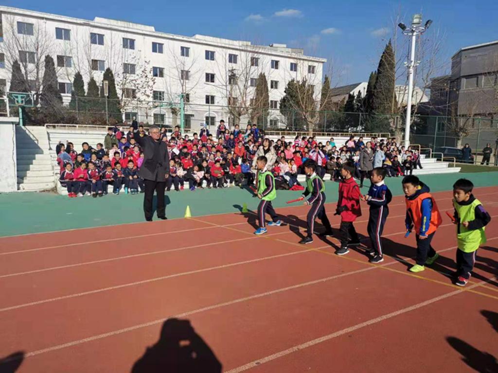 活动分年组进行,每个班级选派男、女各5名队员参赛,比赛采取男、女混合接力的方式进行。在寒冷中,没有阻挡老师和同学们参加活动的热情,早早的来到了比赛场地。随着校长手中的发令枪一声响,比赛开始了。现场紧张激烈,同学们呐喊助威,选手们奋勇争先,在跑道上努力拼搏,赛出风格,赛出成绩。