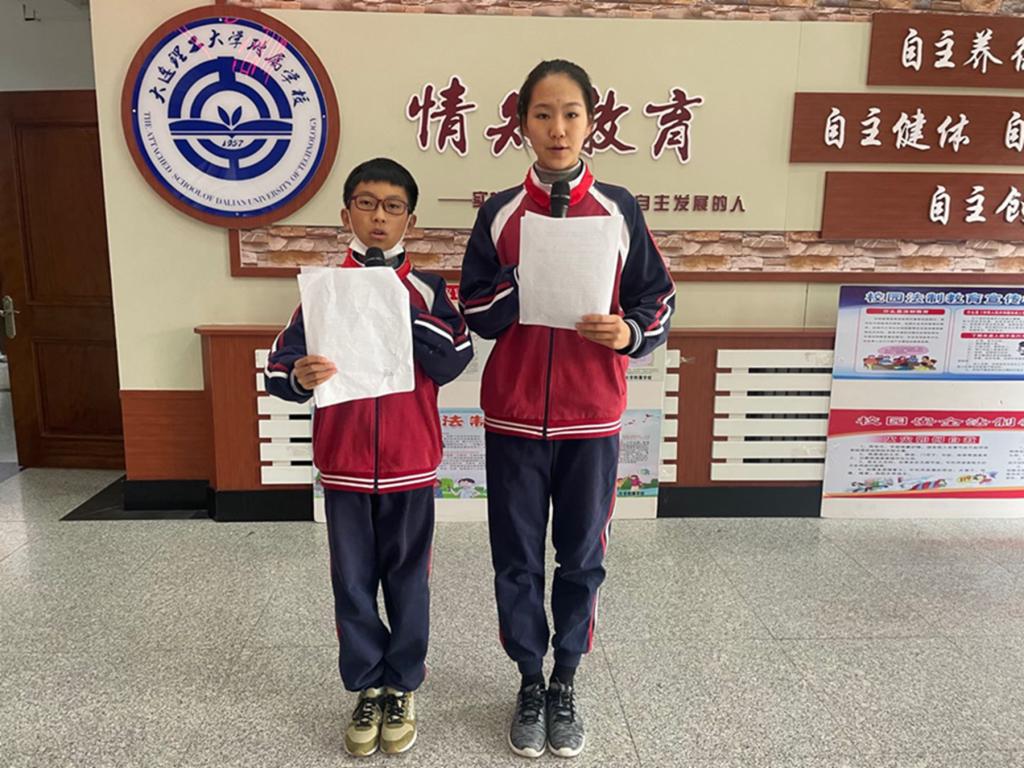随后,孙嘉一、齐奕然两位同学进行了“勿忘国耻,珍爱和平”的主题演讲,他们说:“从立法确立抗战纪念日和南京大屠杀死难者国家公祭日,到坚持申请《南京大屠杀档案》为世界记忆遗产;从发掘整理并公布日军侵华档案、解禁战犯笔供,到建设百余座抗战类纪念馆......我们捍卫那段历史,铭记那段历史,是为了让历史不再重演,也为了记住这份血泪记忆的伤痛,激发民族奋起的精神力量。”