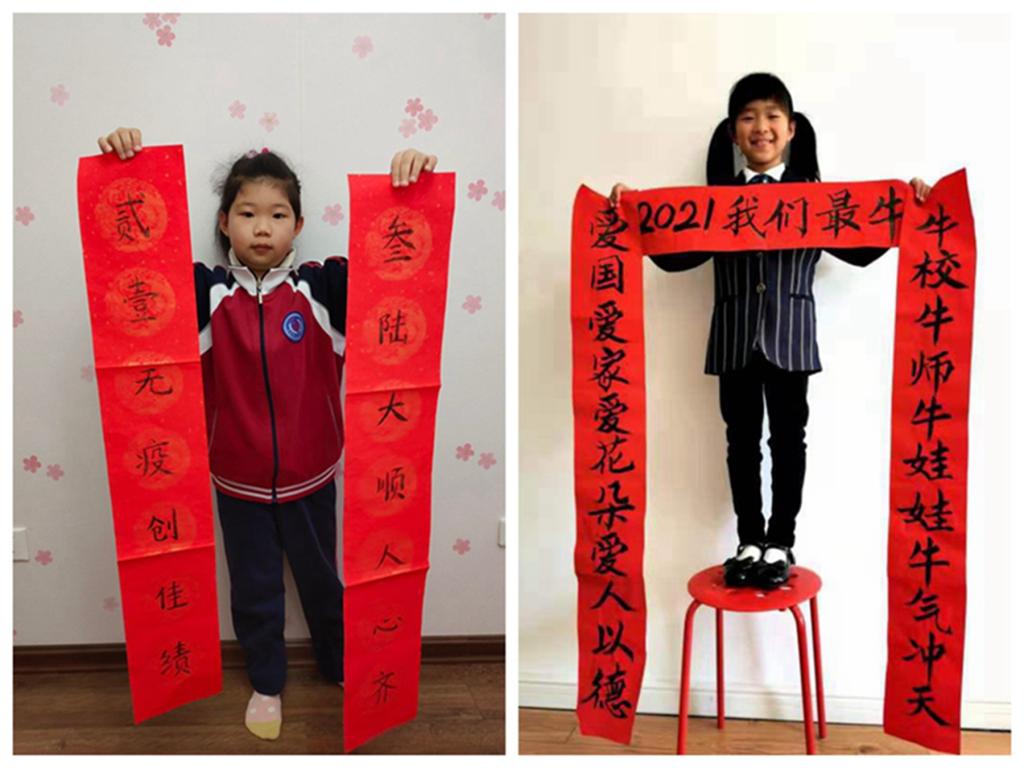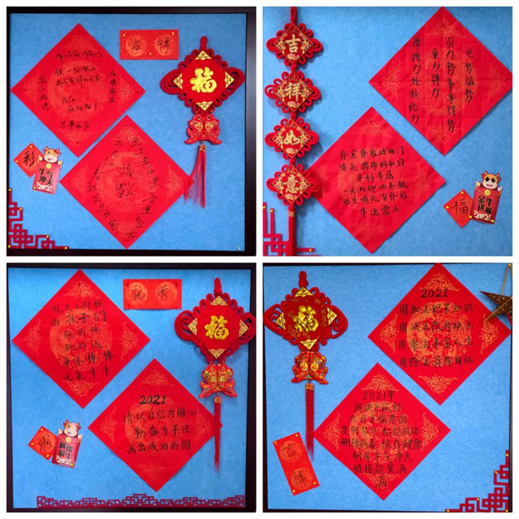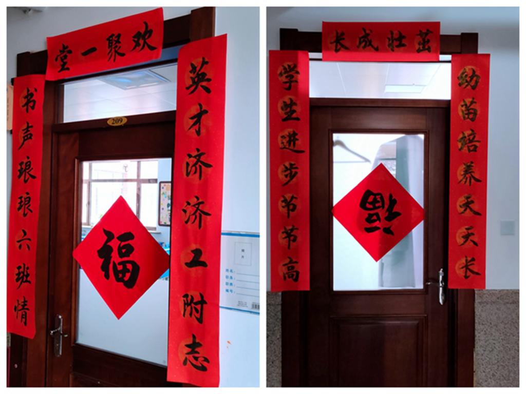 千门万户曈曈日,总把新桃换旧符:一大早,学校大门和各班级的门口就贴上了对联,这些对联都是我校师生自己创作的,大家在传承文化习俗的实践中,深入地体会年味。其中大门口的对联写的是:江海同波扶家国志愿服务最美逆行者,师生并肩铸辉煌创新教育大爱工附人。如对联所讲,疫情面前,我校师生与祖国和人民同呼吸共命运,用责任、坚守和奉献交出了一份优秀的答卷。