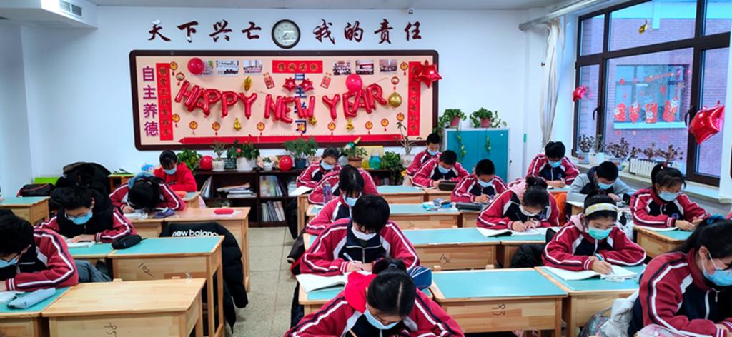 俱往矣!今天,大工附校全体师生和全国人民一起,挺胸抬头、高高兴兴迎接新年的到来。有伟大的中国共产党的领导,有人民政府全心全意的加持,我们意气风发,我们斗志昂扬,我们信心百倍,我们无所畏惧。我们猜谜语、写对联、挂红灯,我们聚精会神上课,我们一丝不苟防疫。我们端坐在教室里,同学们的朗朗读书声是最美的音乐,老师写板书的动作是最美的舞蹈,师生们健康的笑脸是最美的画面,这是我们最难忘的联欢!