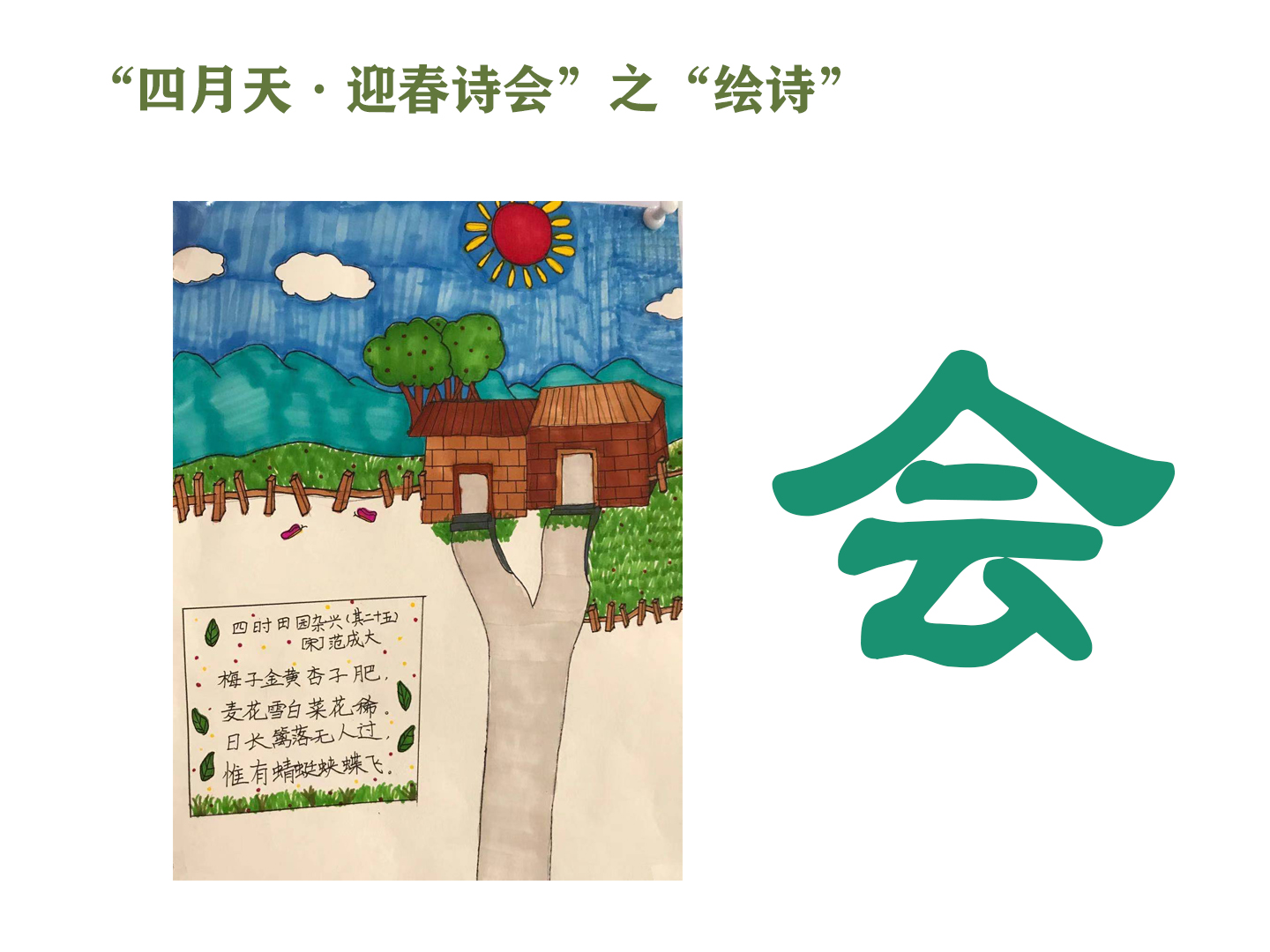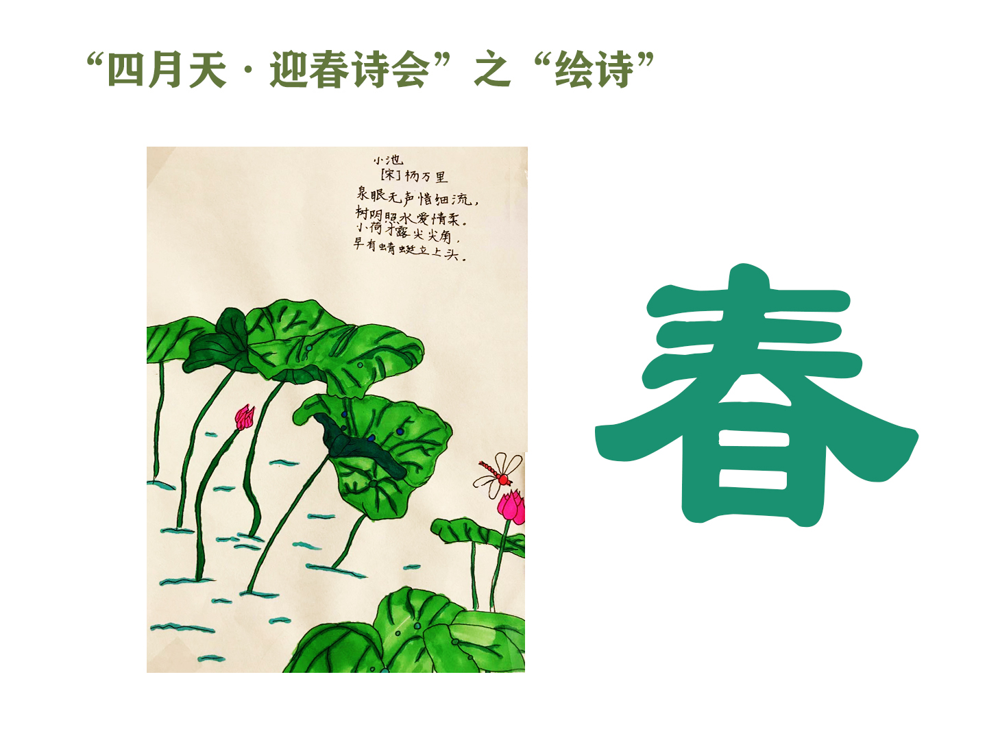 同学们选择自己喜欢的诗词,以稚嫩的笔触和敏感的童心,将自己对于春天的美好景色和诗人的美丽诗篇的理解表达于方寸之间。