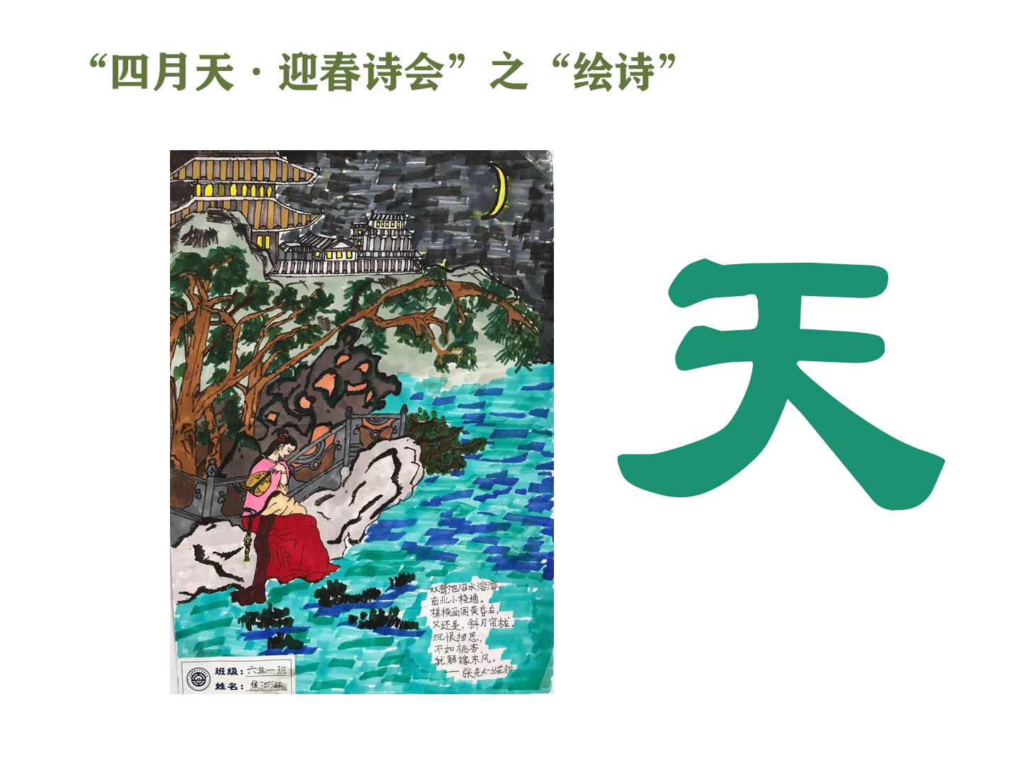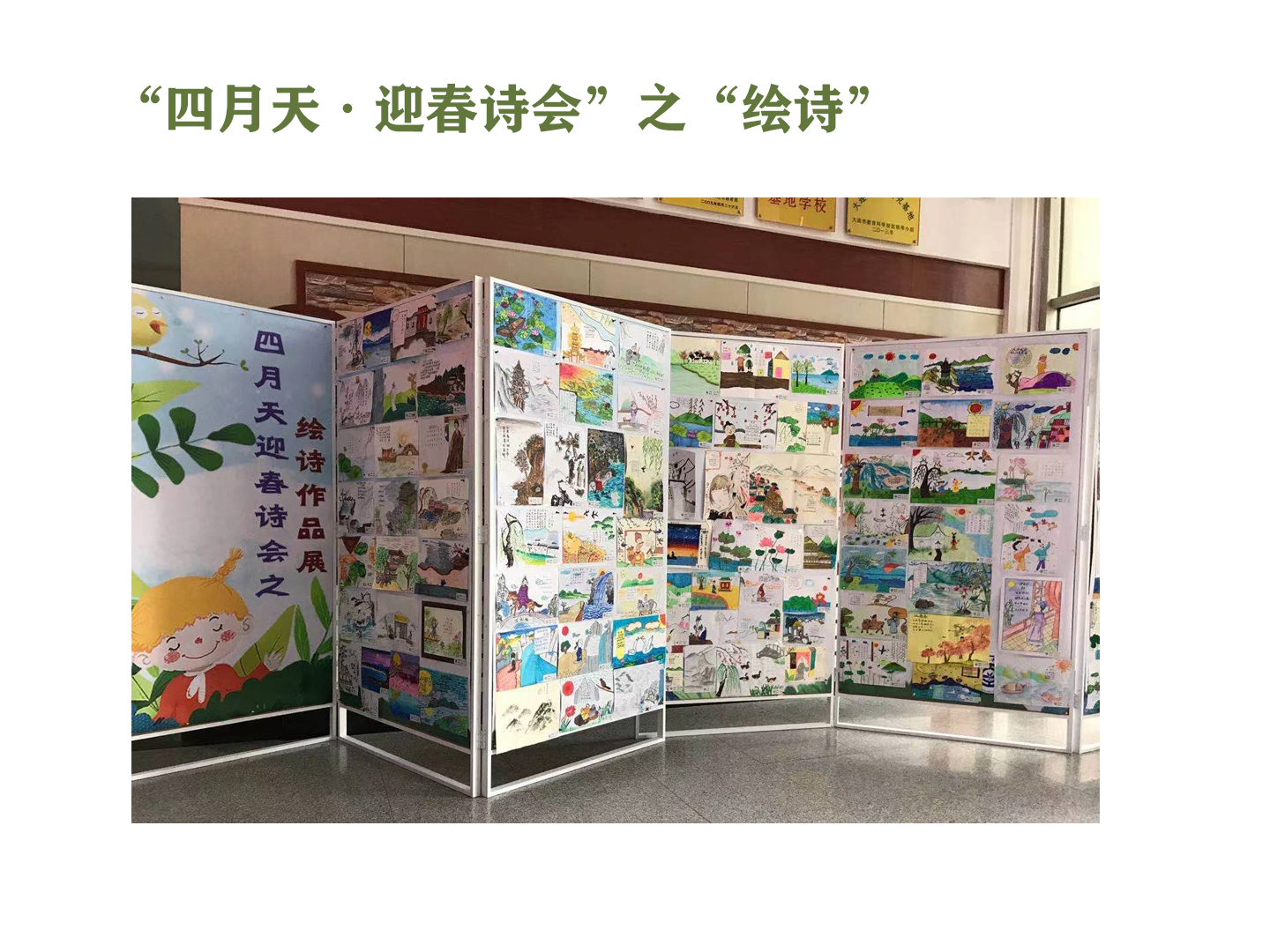 阳春三月,杨柳催绿,我校“四月天·迎春诗会”系列活动陆续开展,“绘诗”展览作为诗会系列展出的第一项,于4月1日与大家见面啦!在美术老师的精心指导下,孩子们以笔画诗,感受“最是一年春好处”的美景,体会诗人吟咏春天的诗心、诗情、诗意,小学部一至六年级同学们积极参与,我们将孩子们的绘诗作品布置在展板上,瞬间,诗情画意充盈了我们的校园,带来一场诗与画的视觉盛宴。