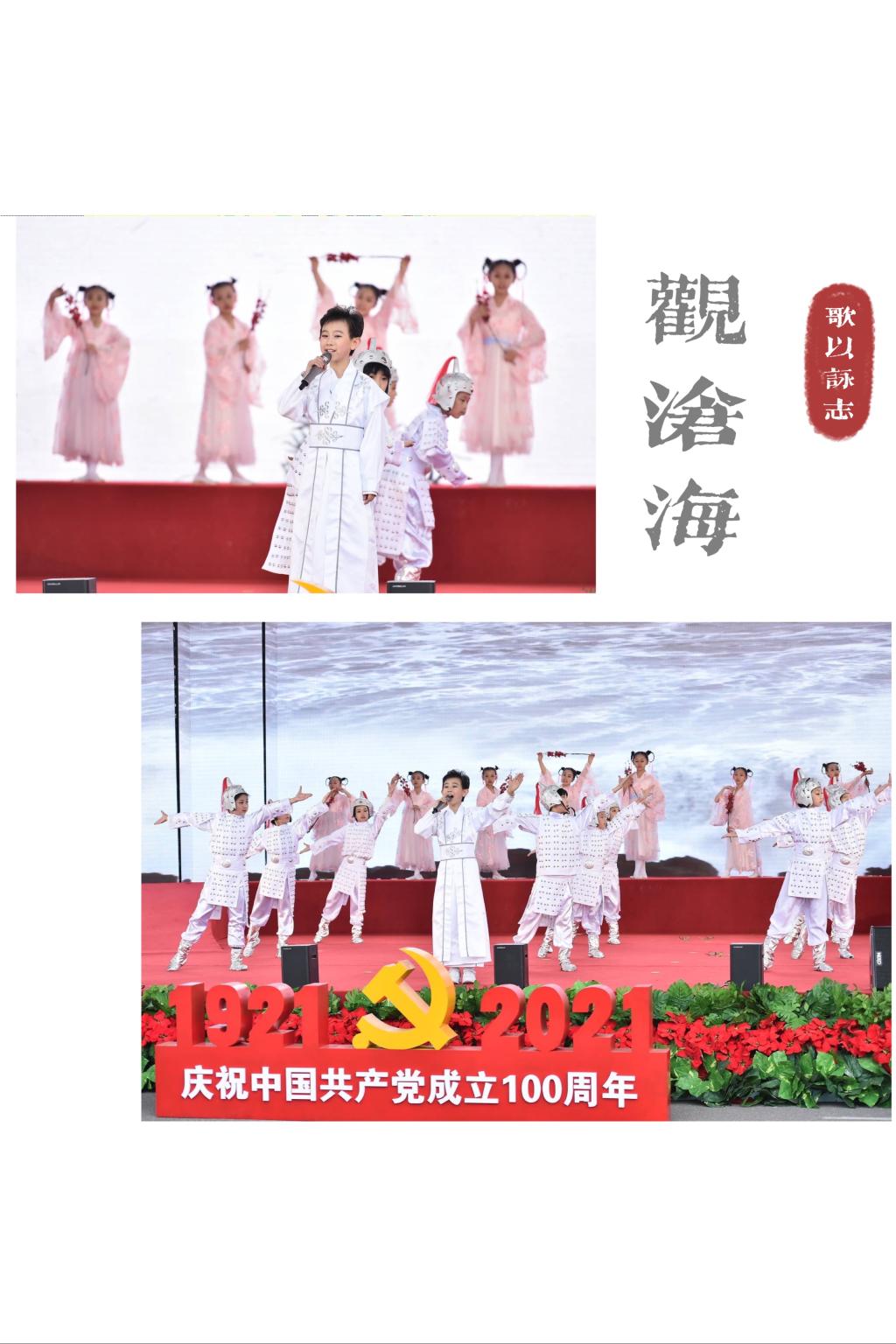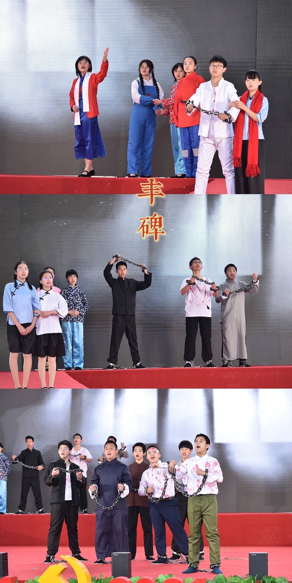 师生深情地表演,感染了在场的每一位观众,大家由衷地感受到今天幸福得来不易,对中国共产党领导中国革命的艰辛历程和立下的不朽功勋有了更加深刻的体会!当“烈士们”喊出“中国共产党万岁”的时候,全场舞动红旗向烈士致敬!