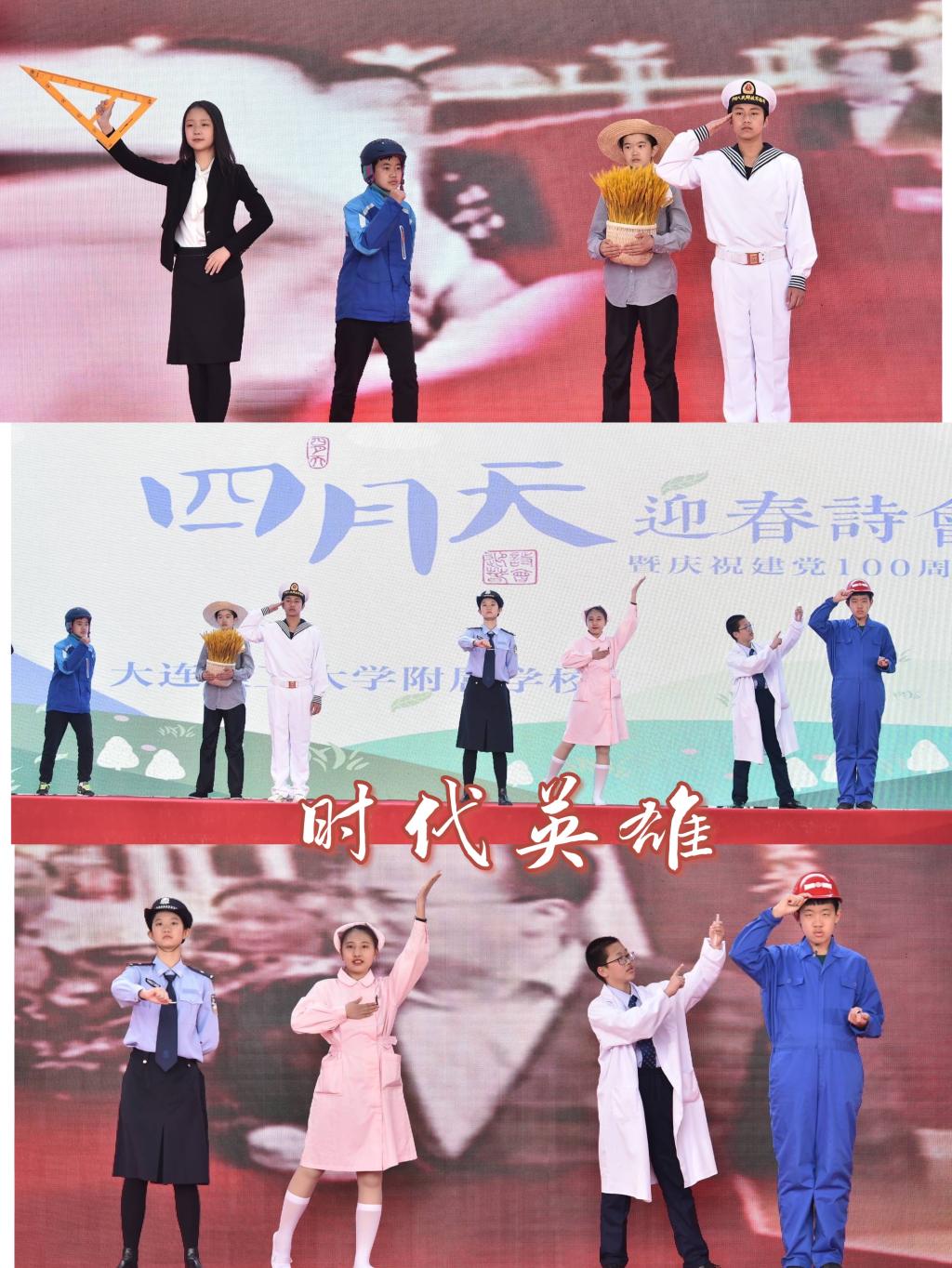 四月天诗会从3月15日启动开始,历经绘诗、抄诗、三行诗创作,4月9日来到第四站——诗会展演。展演分“慎终追远”“壮阔百年”“繁星春水”三个篇章,工附师生在这人间最美四月天里,诵读经典,感受中国诗词的意蕴和分量;重温壮阔百年史上经典故事,向党致敬;伴着微微的春风,诗意地感受繁星春水一样的少年生活……