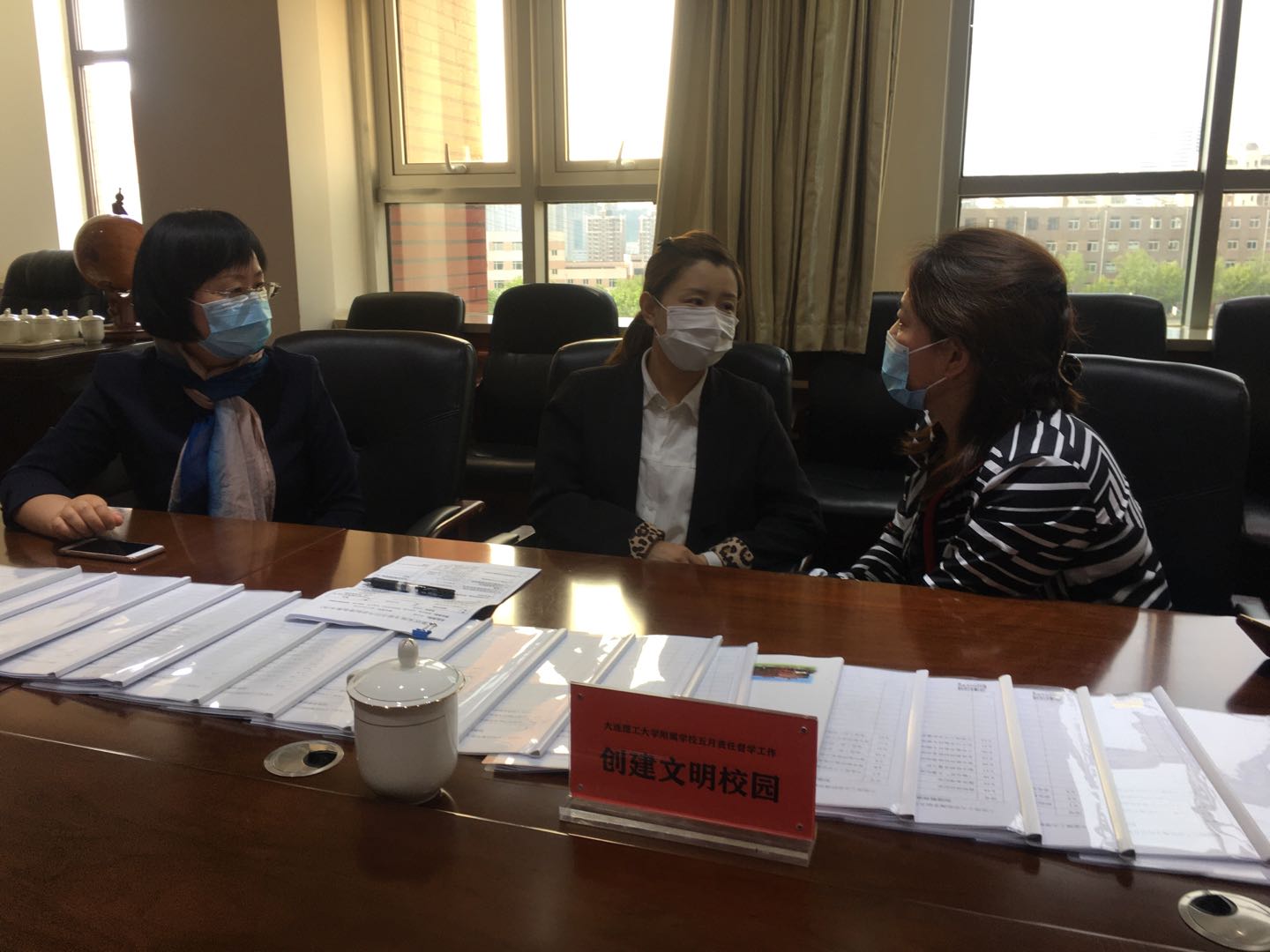 于玲老师在赵霞、李桂玲副校长的陪同下,通过查阅资料,与教学发展部两位主任进行访谈,详细了解了学校在读物管理、作业管理、手机管理和体质健康管理方面的工作开展情况,对我校规范严谨的教育教学工作表示肯定。