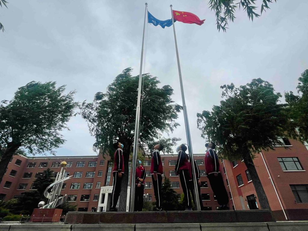 为此,我校今天举行特别升旗仪式,主题是:“星光永在,向真正的偶像致敬”!升旗仪式由我校团委书记朱家女主持。