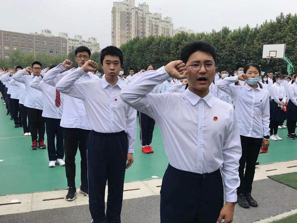 仪式的最后,我校党委书记田晓明讲话,他对新队员、新团员们表示祝贺,激励同学们树立远大理想,努力提升自我,为组织添彩,为祖国争光。
