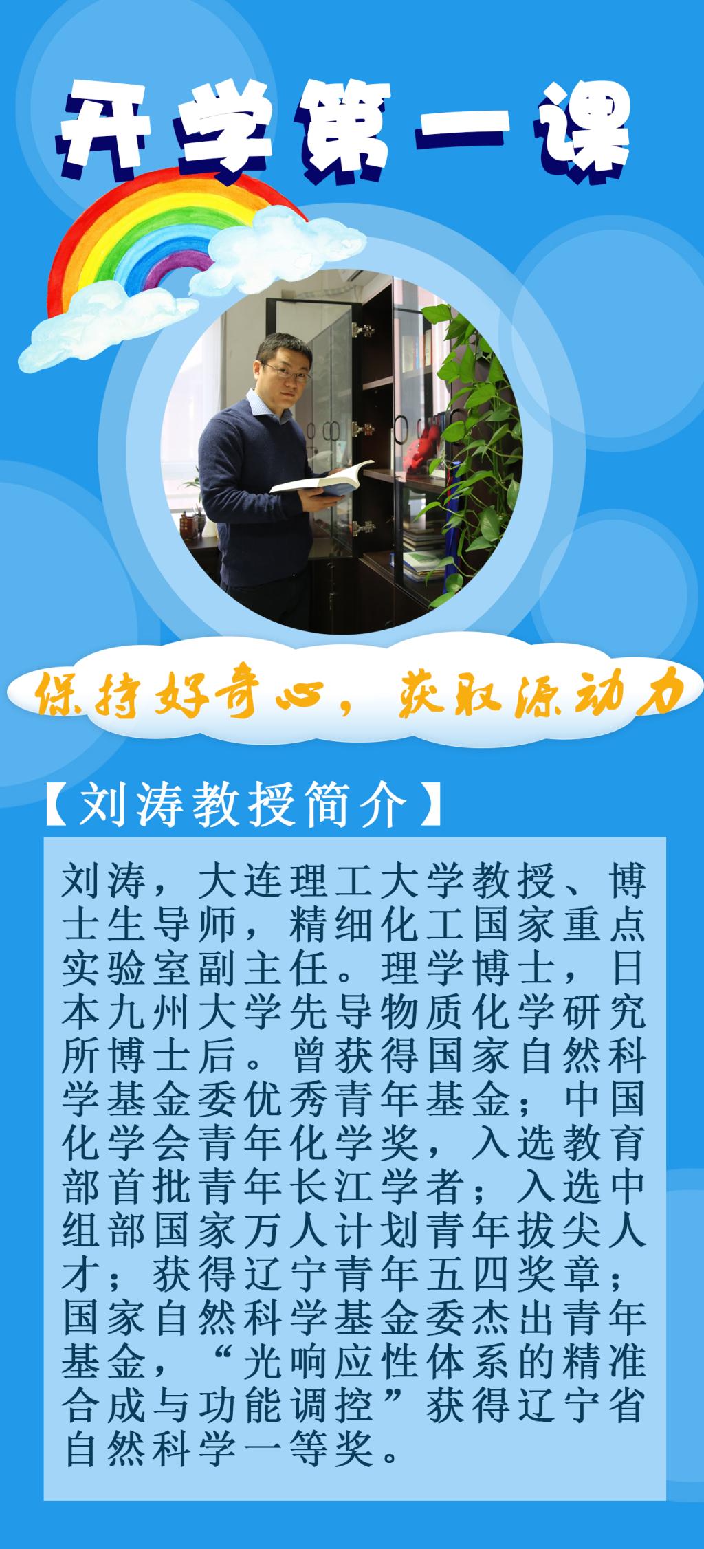 全校学生的开学第一课由大连理工大学教授、博士生导师刘涛老师执教,课题是“保持好奇心,获取源动力”。刘涛教授在开学第一课中用大量生动有趣的事例,深入浅出的为同学们讲述了什么是好奇心、好奇心对一个人发展的重大意义以及如何保持好奇心的具体方法,生动地诠释了好奇心是打开新世界的钥匙,是推动每个人自主前进的内在动力的道理。希望同学们在习以为常的事情里,多提出一些好问题,在好奇心的引导下,去拓展自己对世界的认知;通过不断提问,保持强大的好奇心,获取源动力,成为更好的自己。