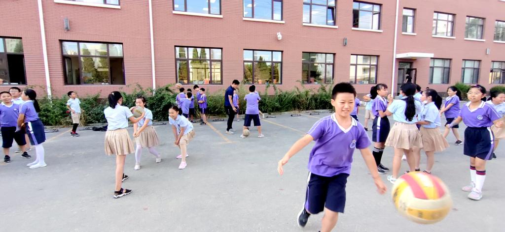 附属学校综合服务楼建设工程和校园改扩建项目已于八月底开工建设,工程建设期间操场被隔离为施工场地。为了保证学生正常开展体育课及体育活动,学校教师自发将车辆停放到校园外,将东侧停车场腾出作为学生活动场所,体育组老师利用休息时间合理规划可利用场地,确保一切体育活动顺利进行。小学按年级人数,班级所在位置,安排如下,一二三年级在教学楼前空地,四年级在教学楼东侧,五六年级在教学楼西侧。