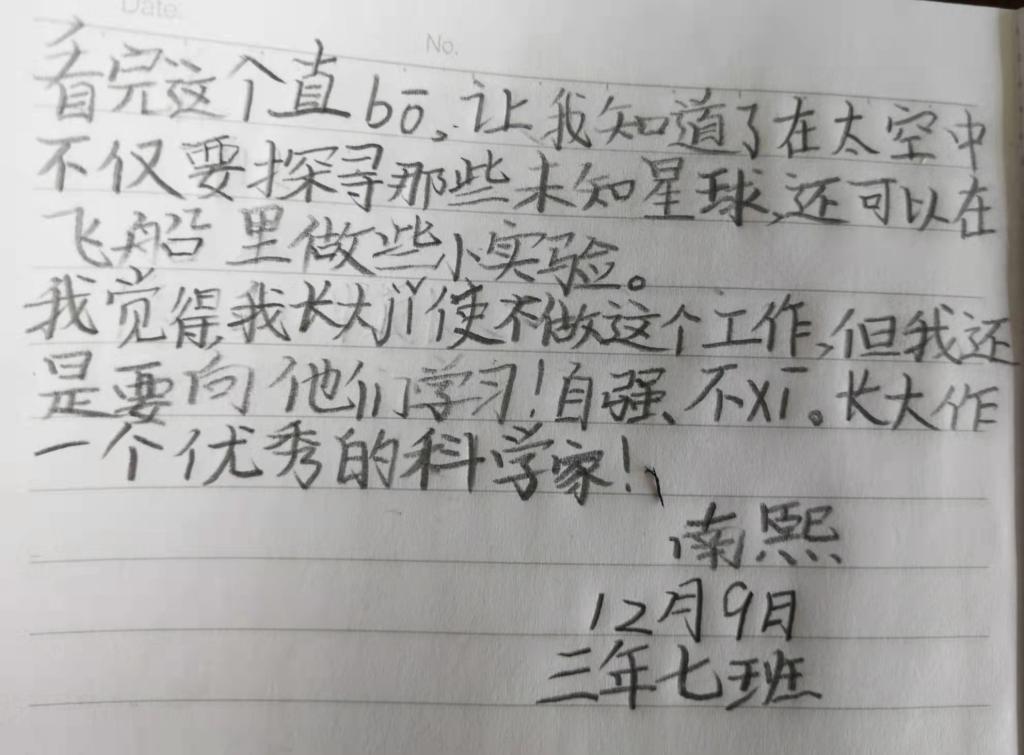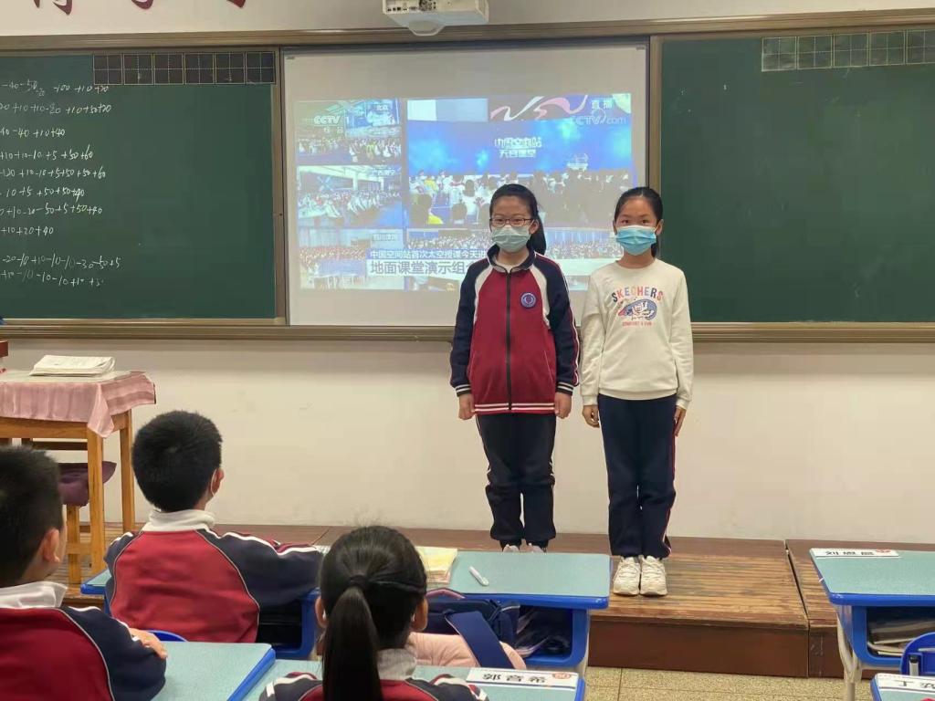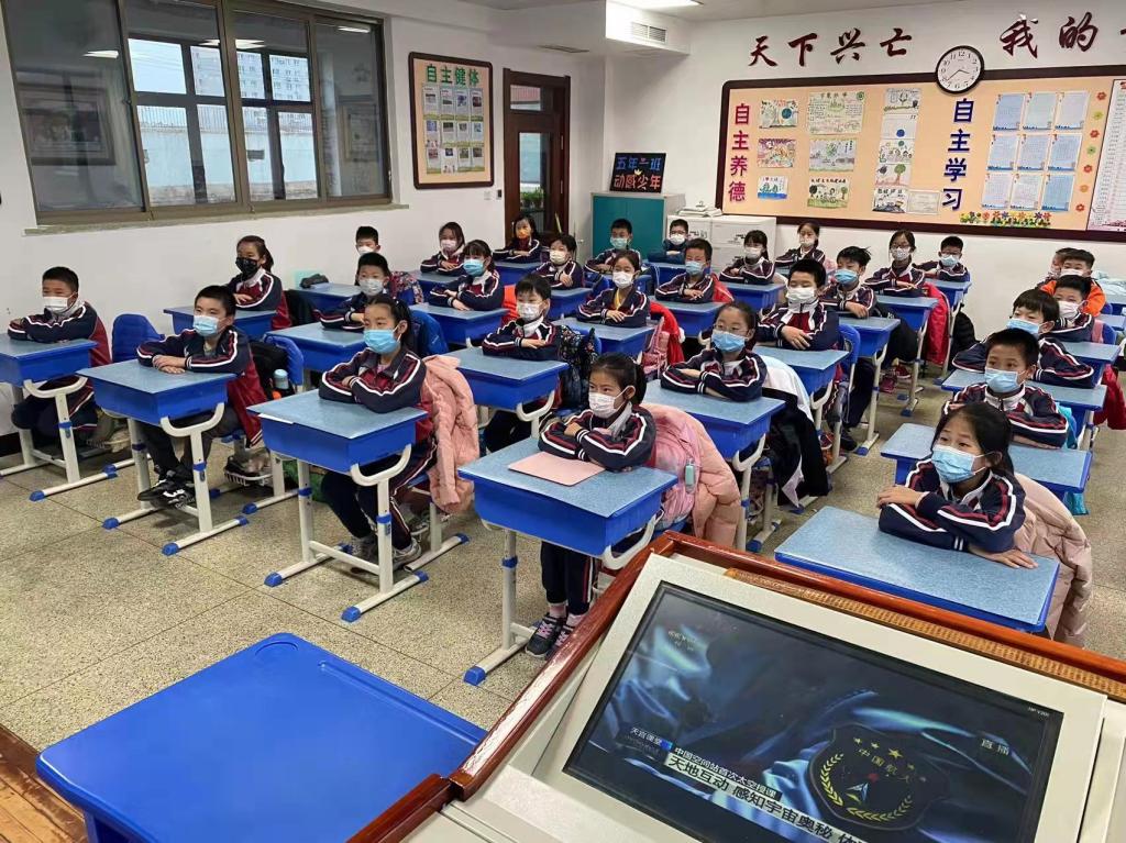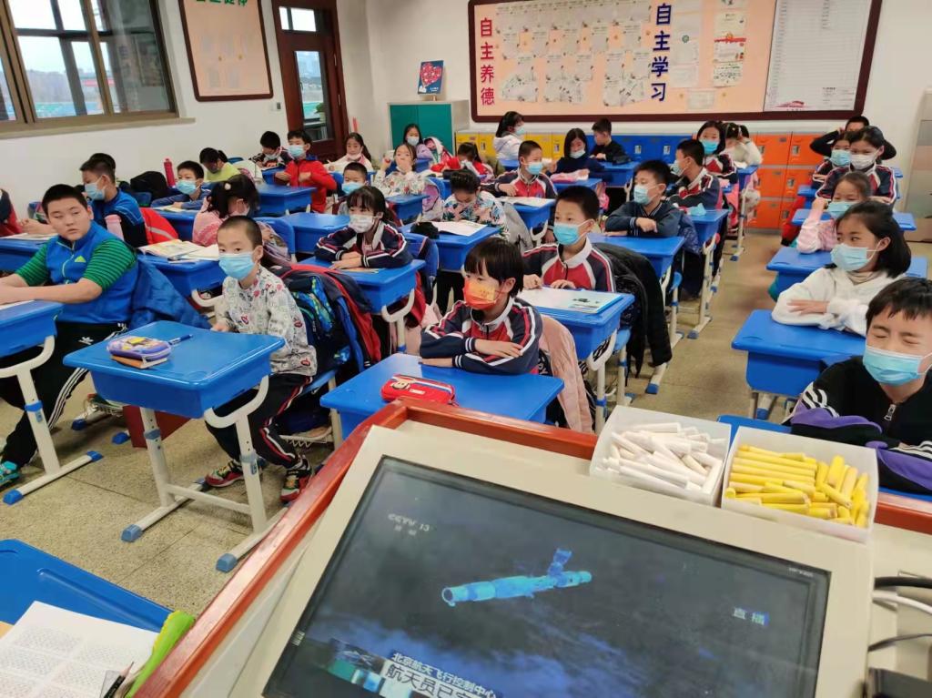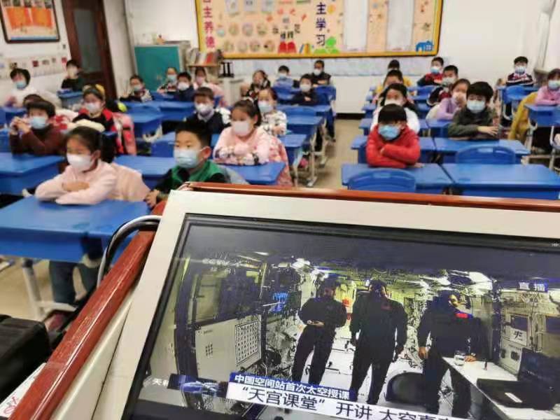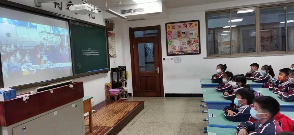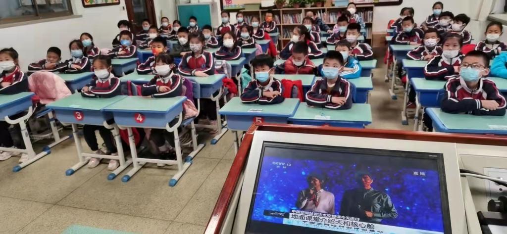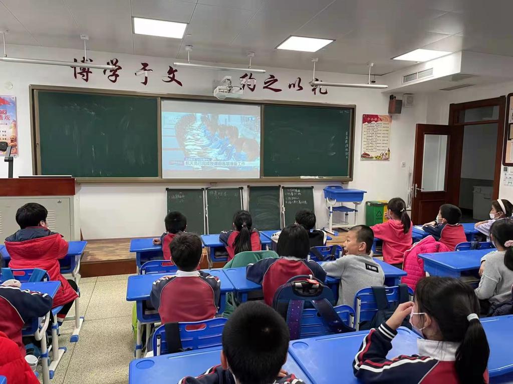 12月9日下午3点40分,小学部37个班级学生在班主任的组织下,在教室里认真观看了“天宫课堂”。课堂中神舟十三号乘组航天员翟志刚、王亚平、叶光富在中国空间站进行太空授课。3名航天员在轨介绍展示中国空间站工作生活场景,演示微重力环境下细胞学实验、物体运动、液体表面张力等现象并与地面课堂进行了实时交流。