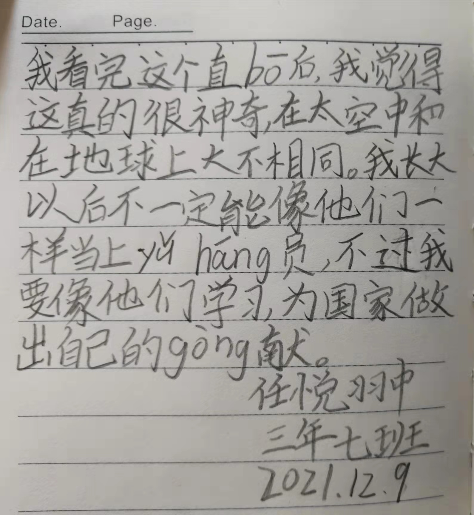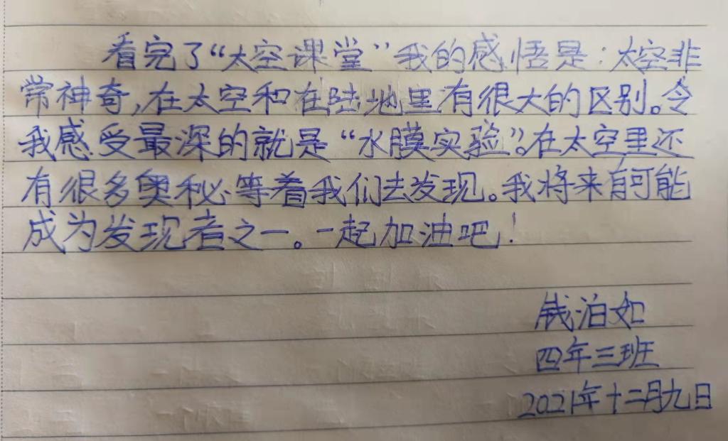 授课内容精彩而有趣,激发了我校学生对科学的兴趣,现场体验了“天宫课堂”带来的魅力,共同感受了科学的奥秘。课后很多学生纷纷谈了自己观看的感受。